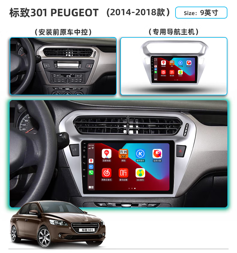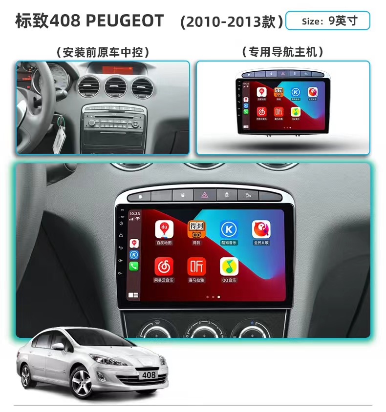 Dongfeng Peugeot 308/408 Elysee 중앙 제어 대형 화면 307/301 반전 이미지 탐색 통합 기계에 적합