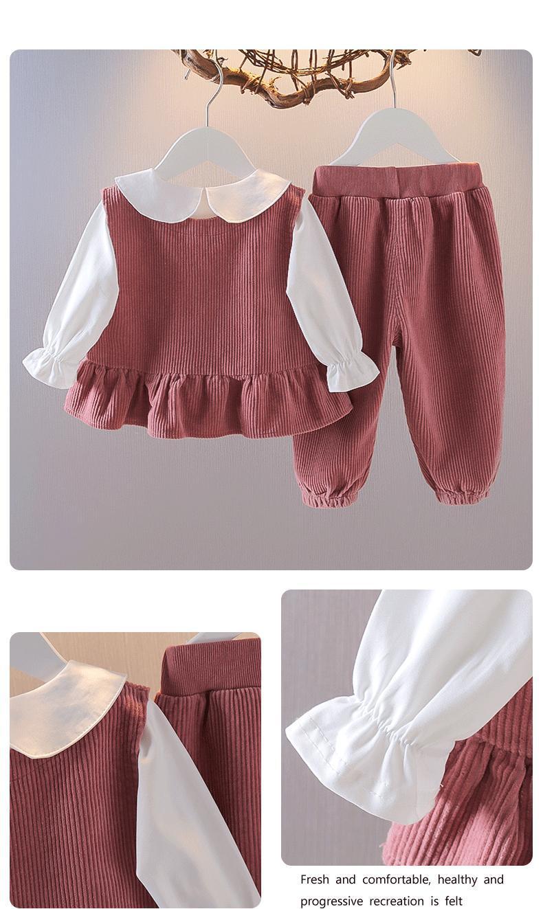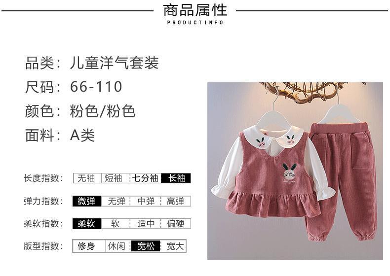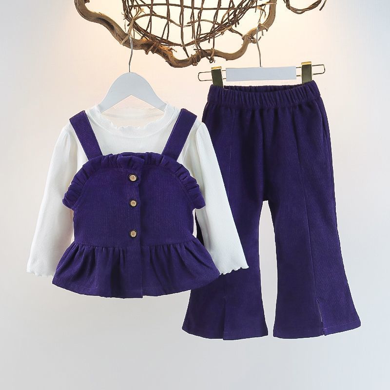 소녀 코듀로이 세트 봄과 가을 아기 소녀 3 피스 캐주얼 서양식 가을 세트
