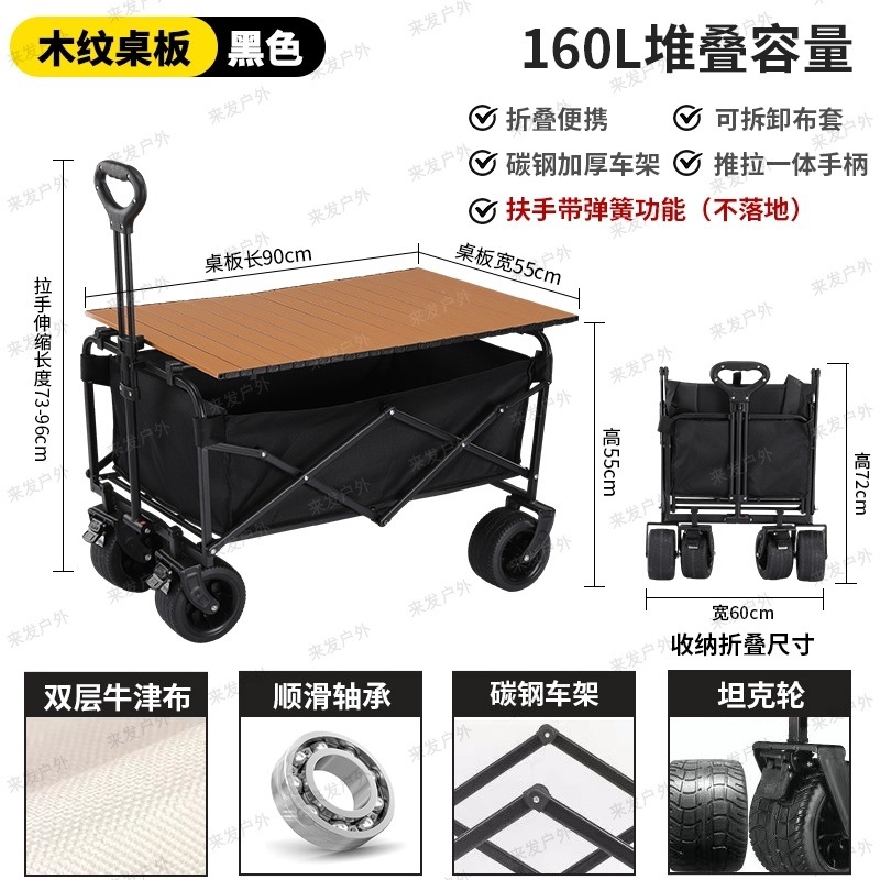 新款露营推车可折叠户外手推野餐车便携营地拖车拉杆小拉车野营车