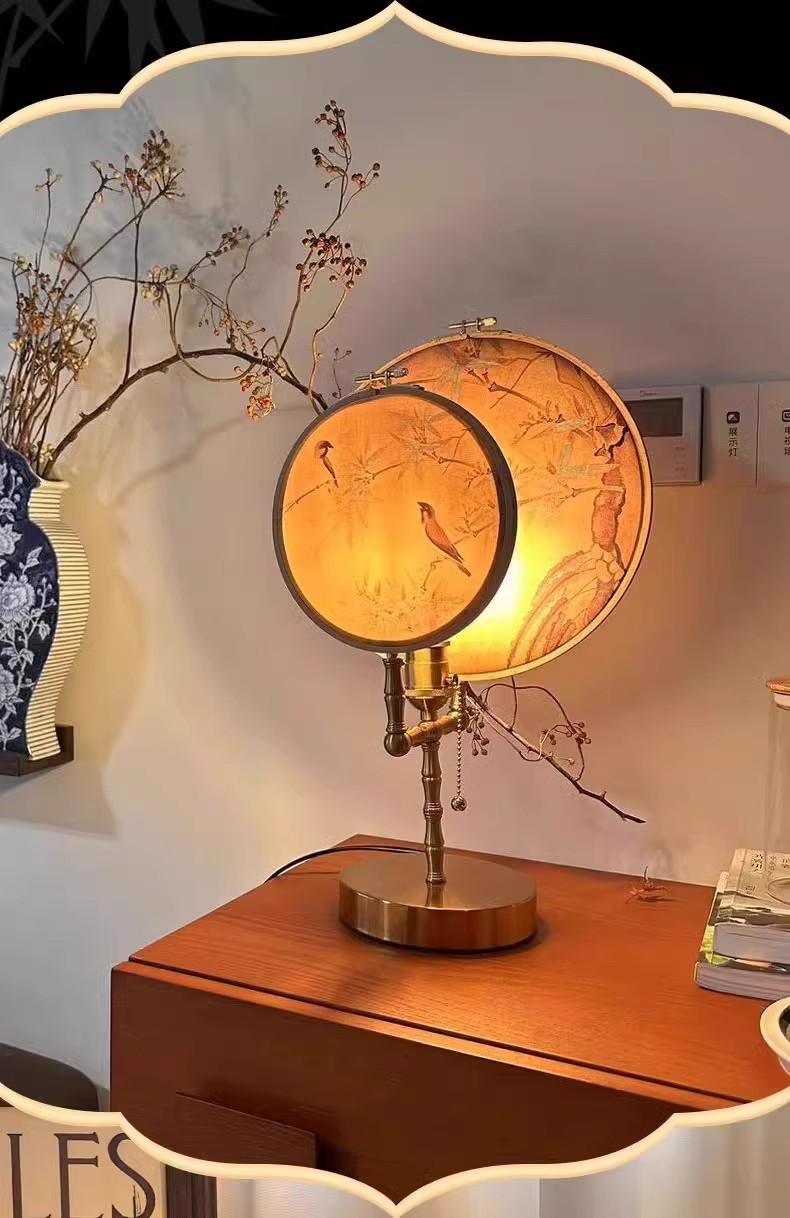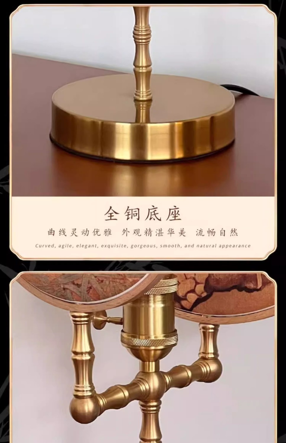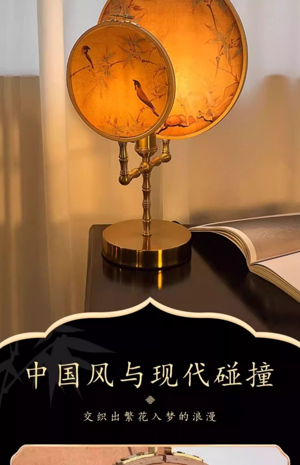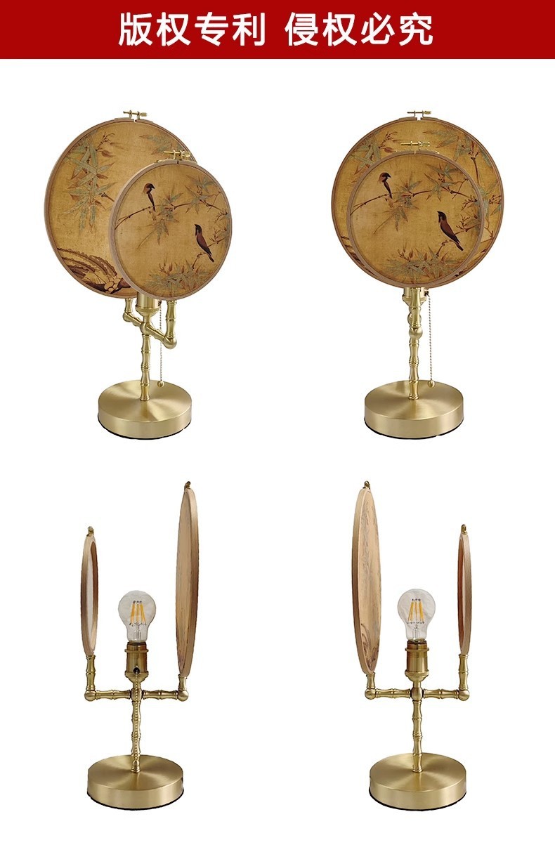 새로운 중국 스타일 테이블 램프 침실 나이트 스탠드 중국 스타일 티 룸 스터디 레트로 라운드 팬 라이트 럭셔리 장식품스토어 가기