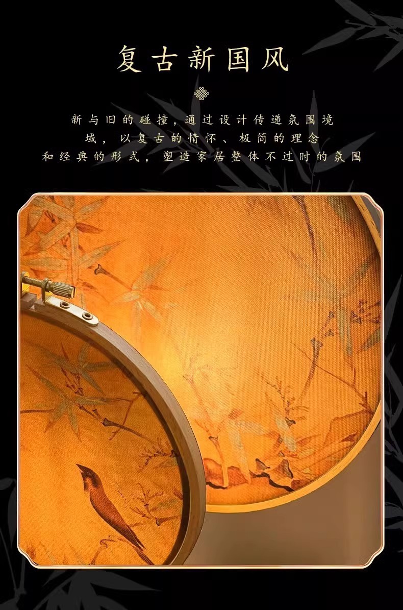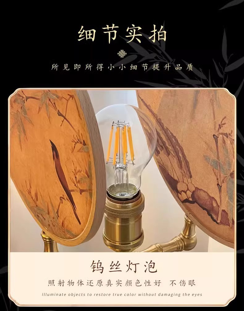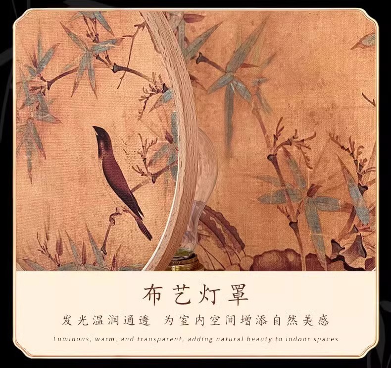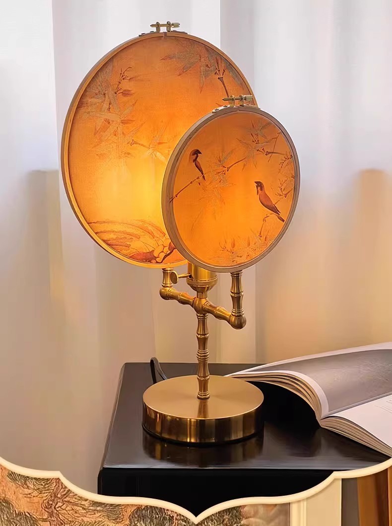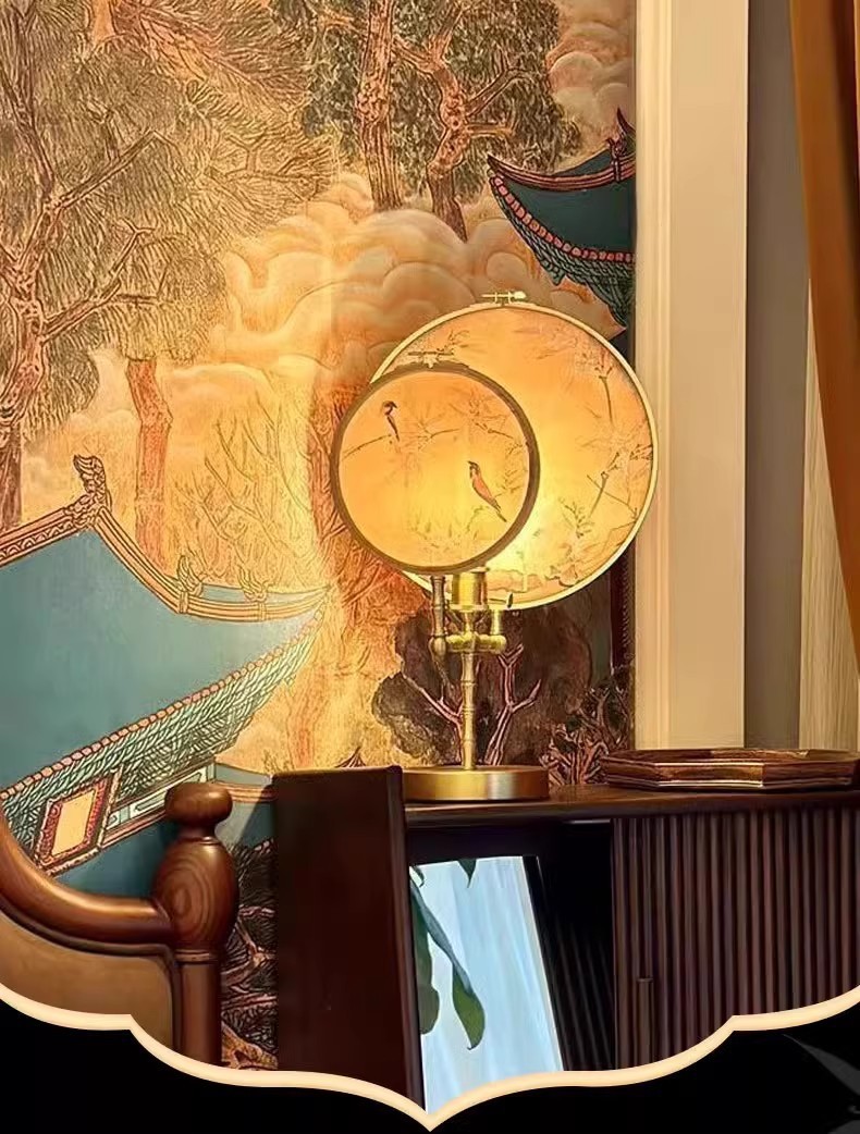 새로운 중국 스타일 테이블 램프 침실 나이트 스탠드 중국 스타일 티 룸 스터디 레트로 라운드 팬 라이트 럭셔리 장식품스토어 가기
