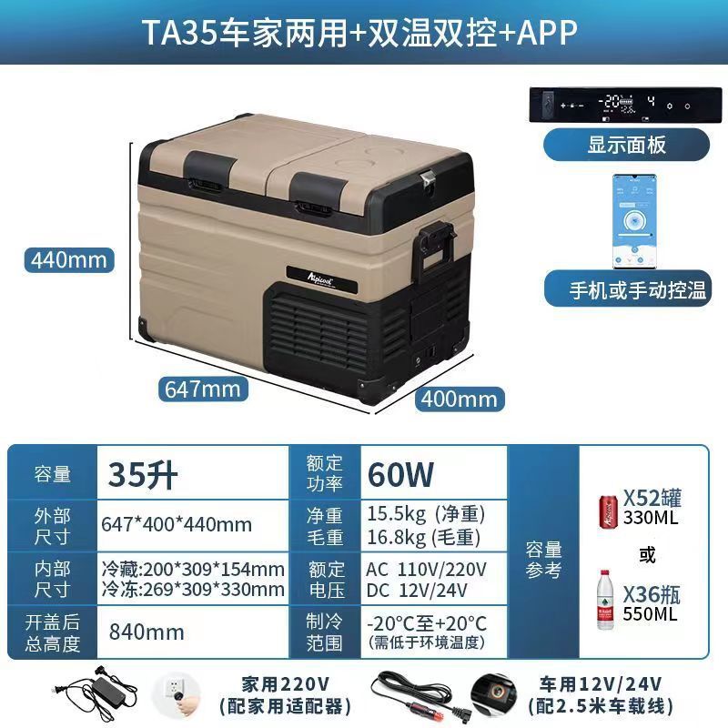 • TA35 리튬 배터리 모델(이중 도어, 이중 온도 제어 + 자동차 및 가정용 이중 사용)