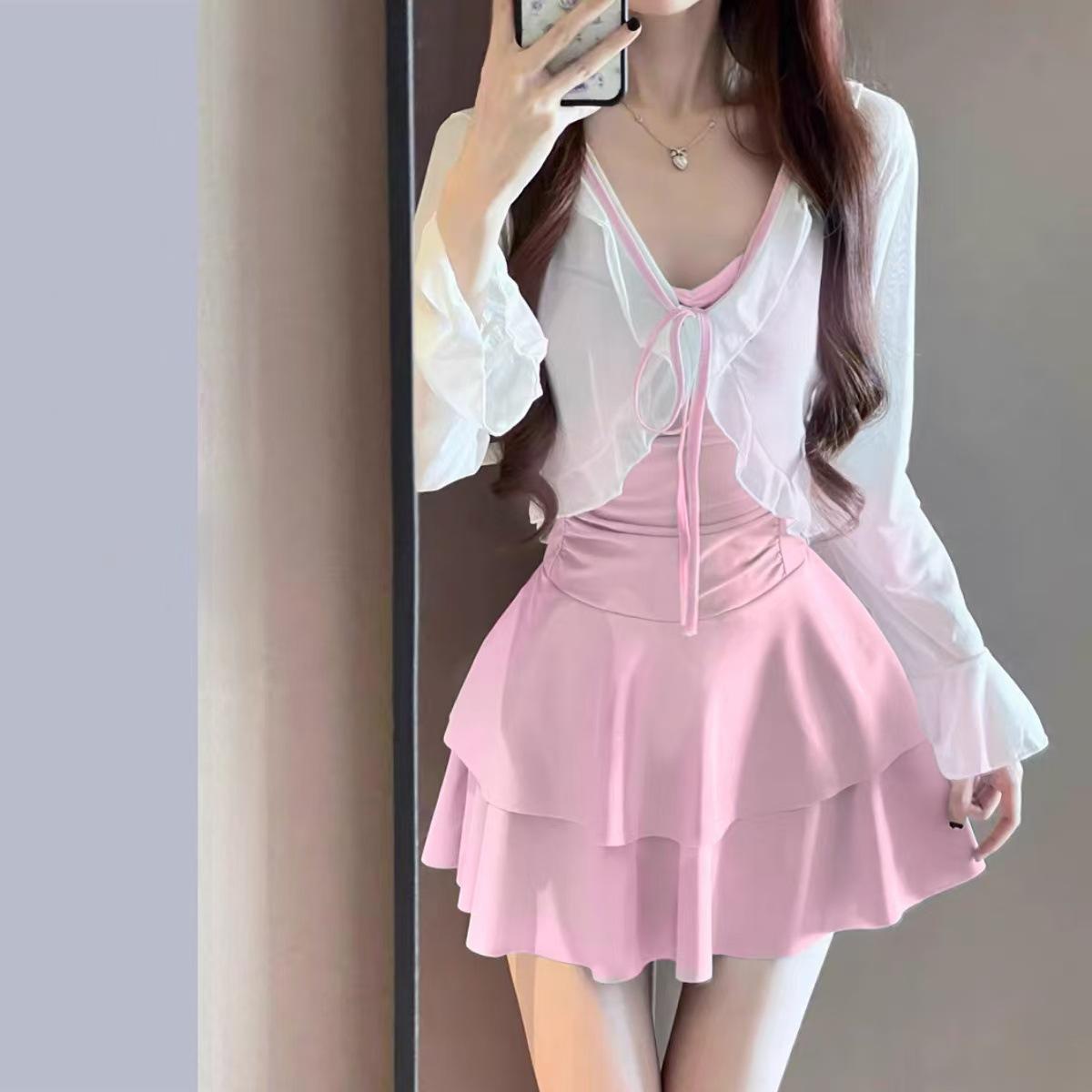 수영복 여성의 2025 새로운 폭발 뚱뚱한 배꼽 뒤덮인 등이없는 성적 치마 슬리밍 순수한 온천 흠뻑 젖어