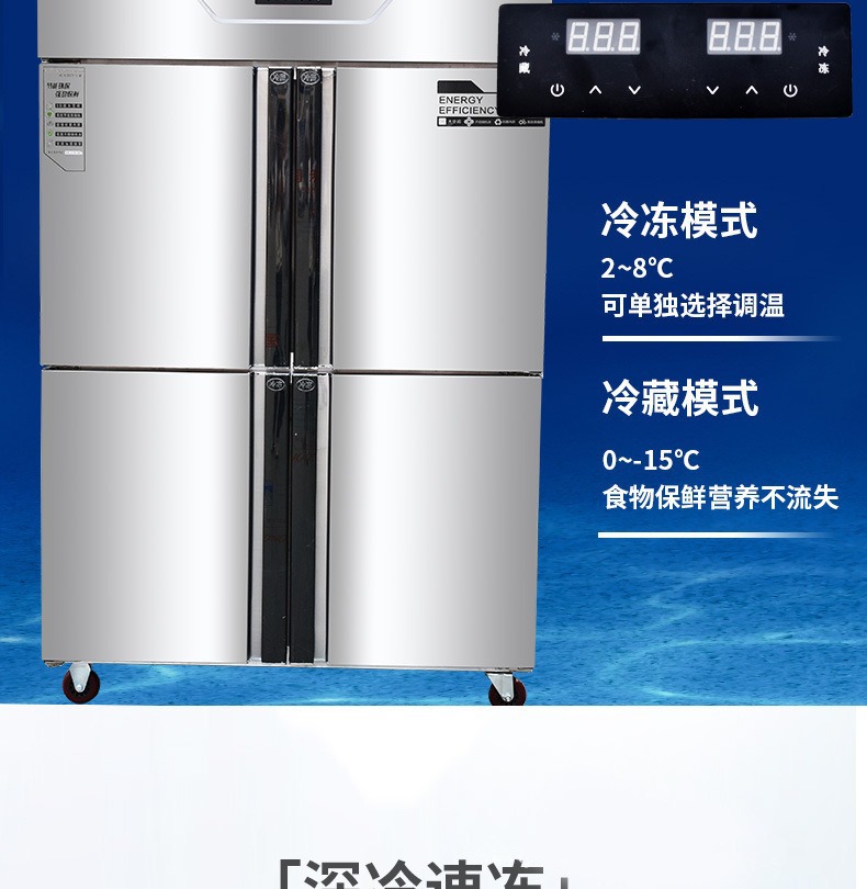 4 도어 냉장고 상업용 대용량 냉동 이중 온도 수직 4 도어 냉동고 주방 신선 유지 캐비닛 냉장 작업대
