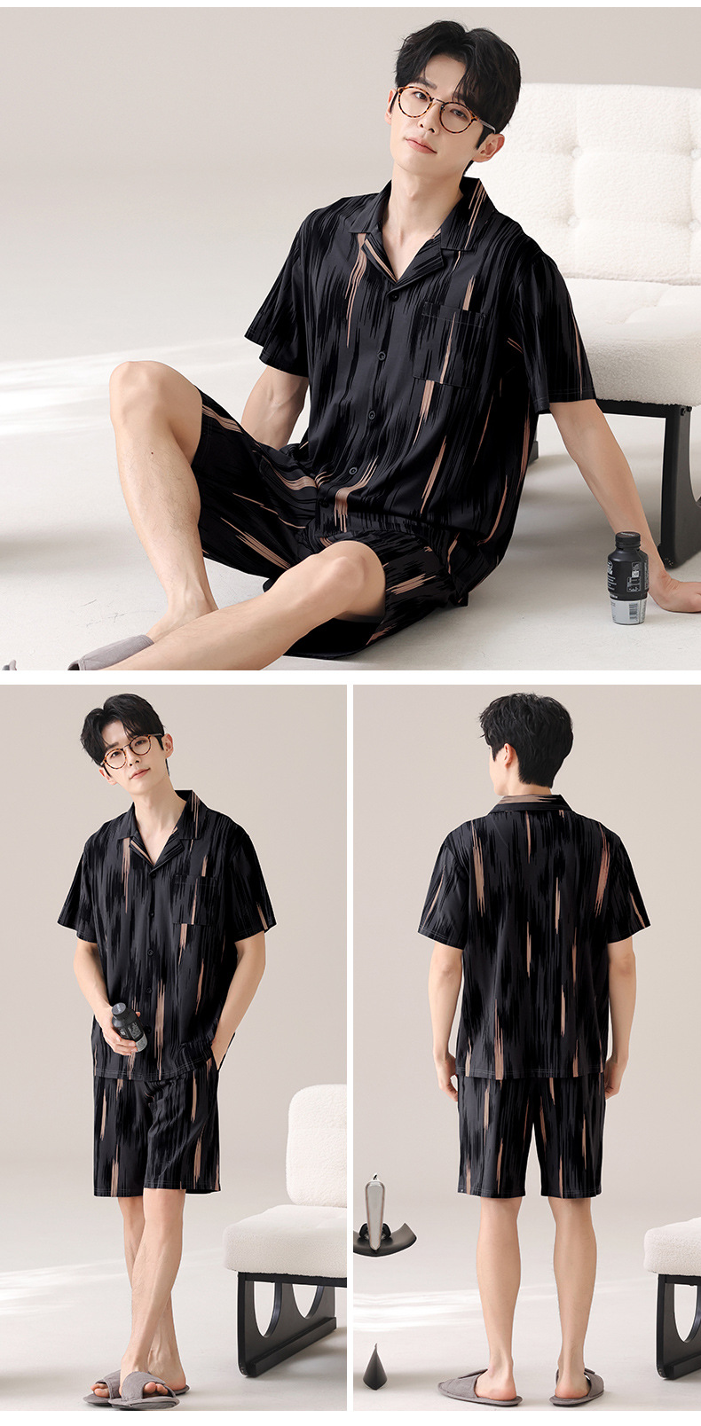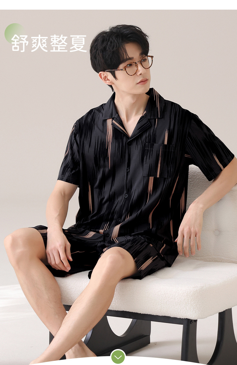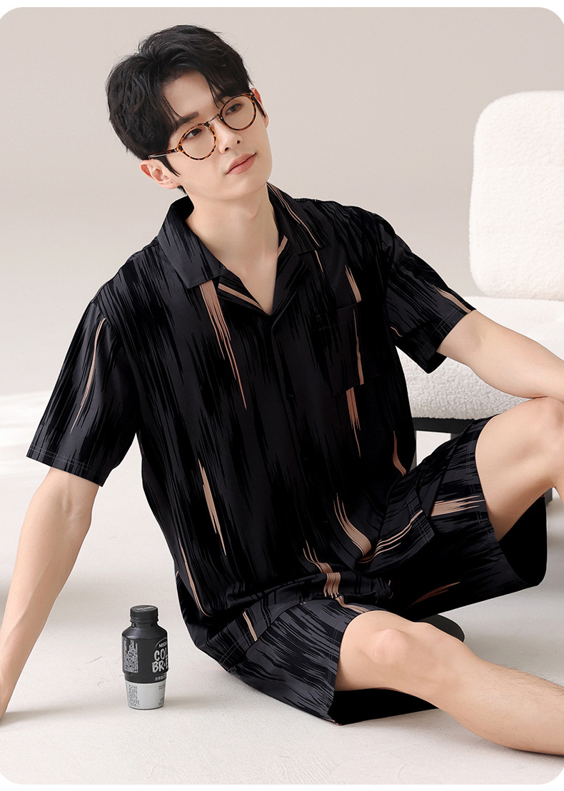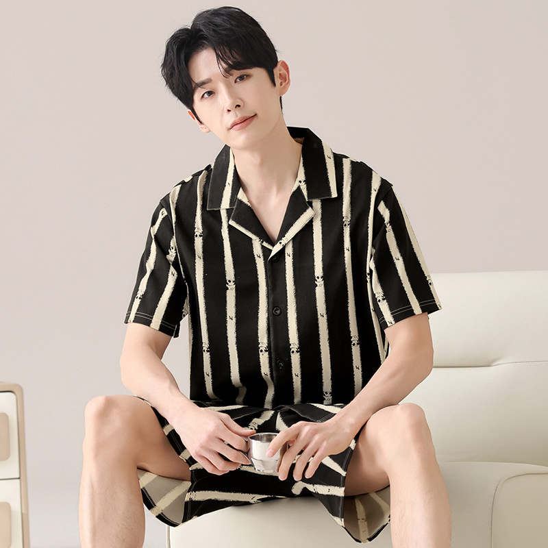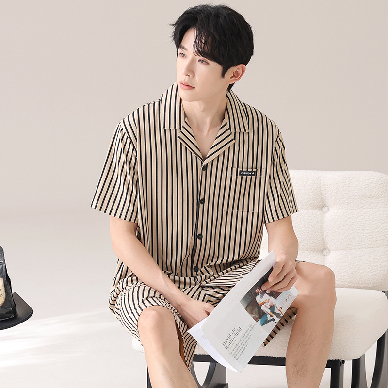 옷깃 남자 잠옷 여름 반팔 반바지 세트 간단한 카디건 겉옷 청소년 2025 새 집 옷스토어 가기