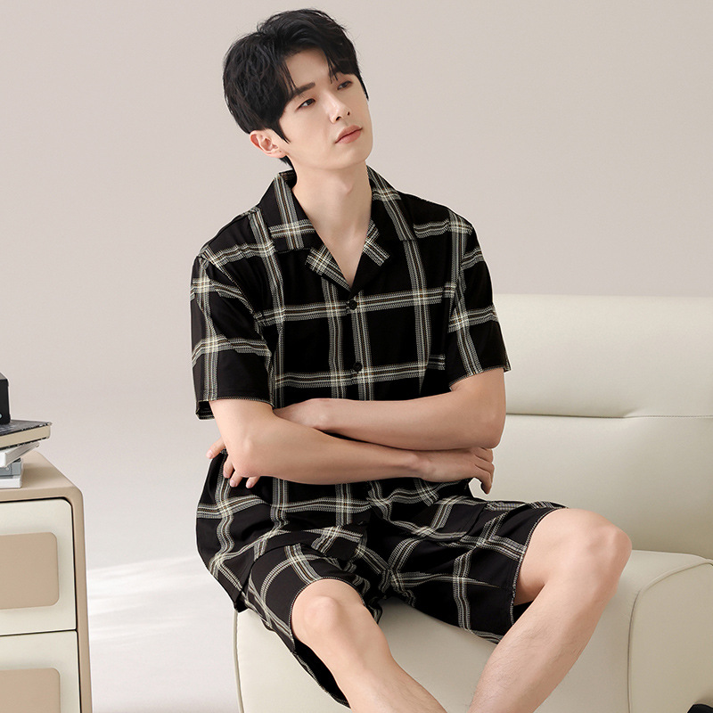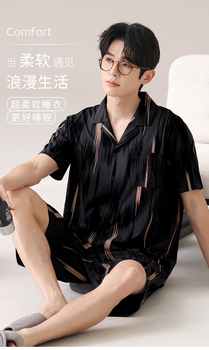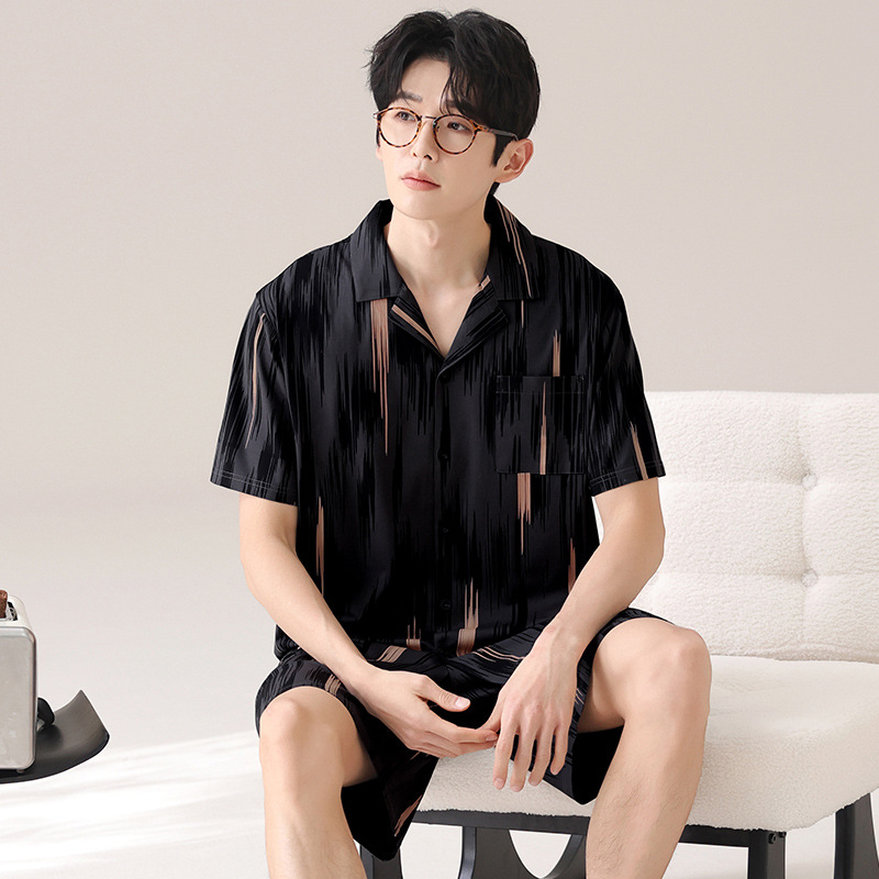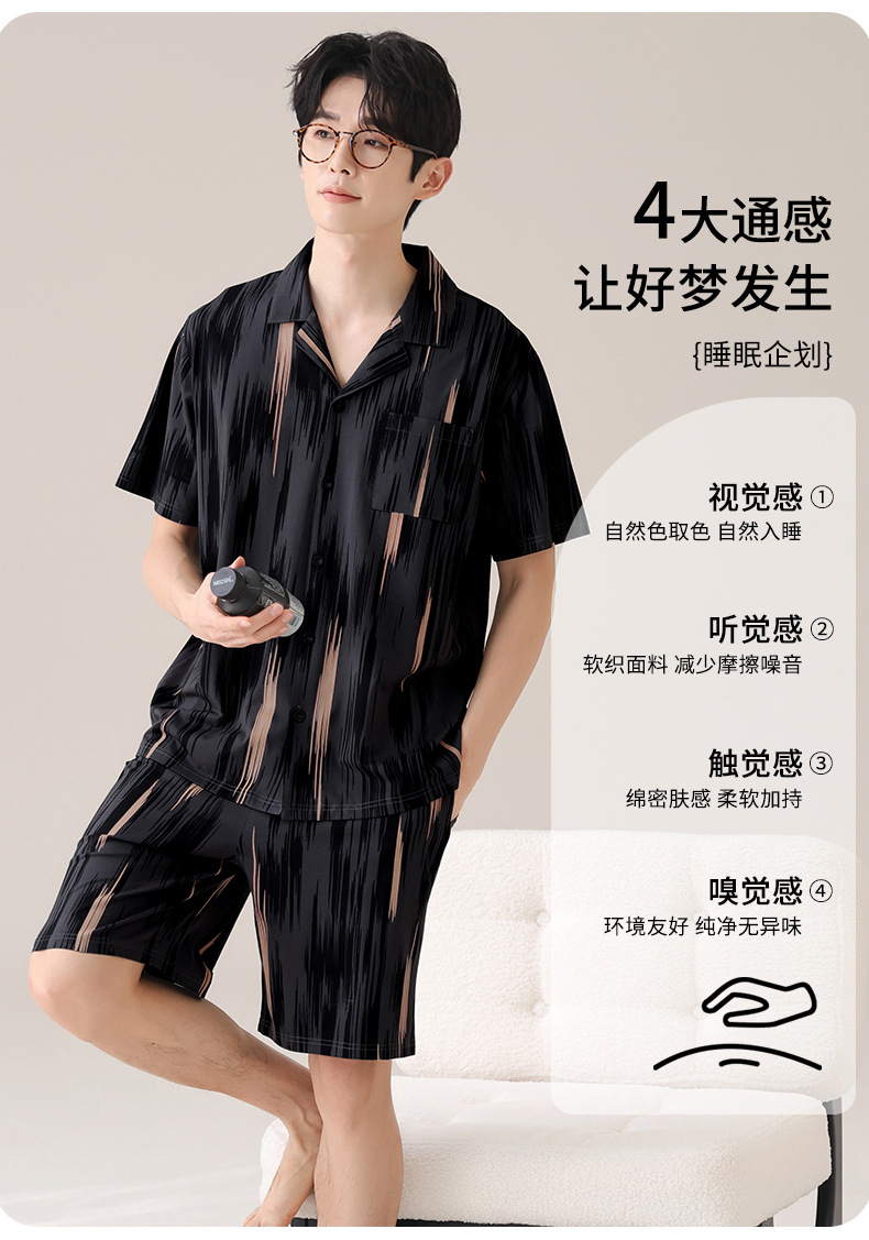 옷깃 남자 잠옷 여름 반팔 반바지 세트 간단한 카디건 겉옷 청소년 2025 새 집 옷스토어 가기