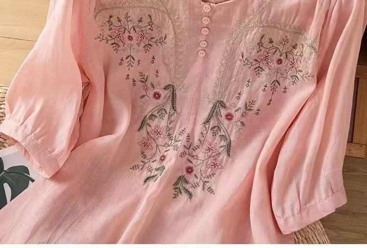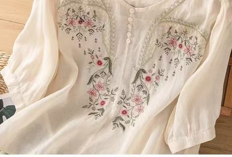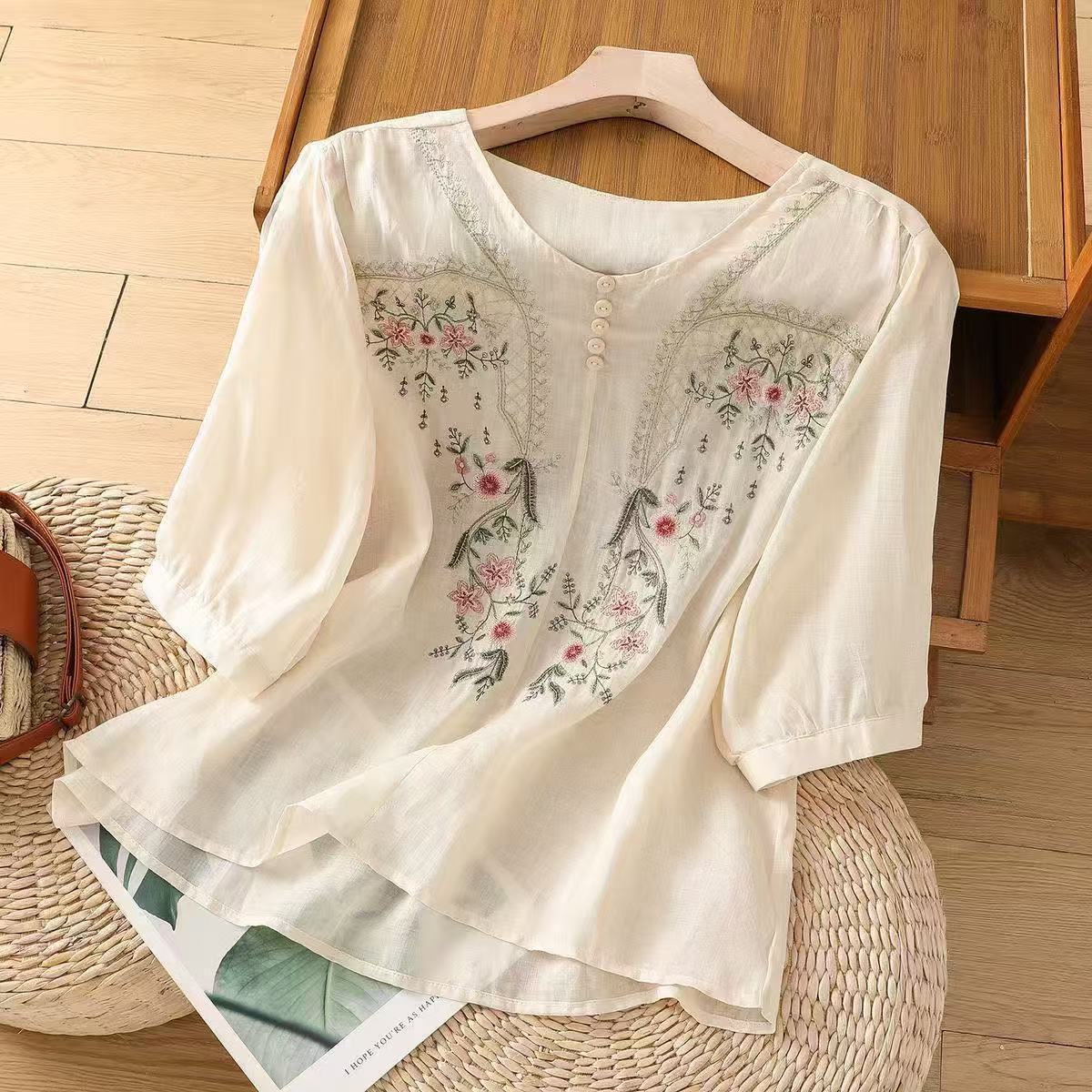 2025 새로운 도착 풀오버 하이 엔드 자수 중국 여성 의류 느슨한 슬리밍 캐주얼 티셔츠 올매치 작은 셔츠