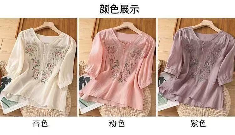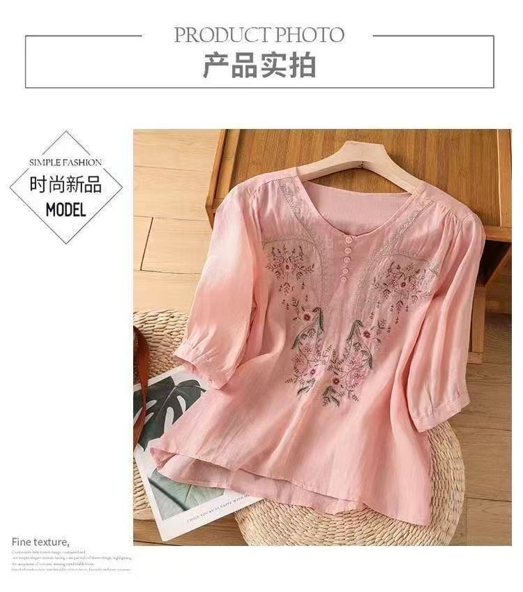 2025 새로운 도착 풀오버 하이 엔드 자수 중국 여성 의류 느슨한 슬리밍 캐주얼 티셔츠 올매치 작은 셔츠스토어 가기