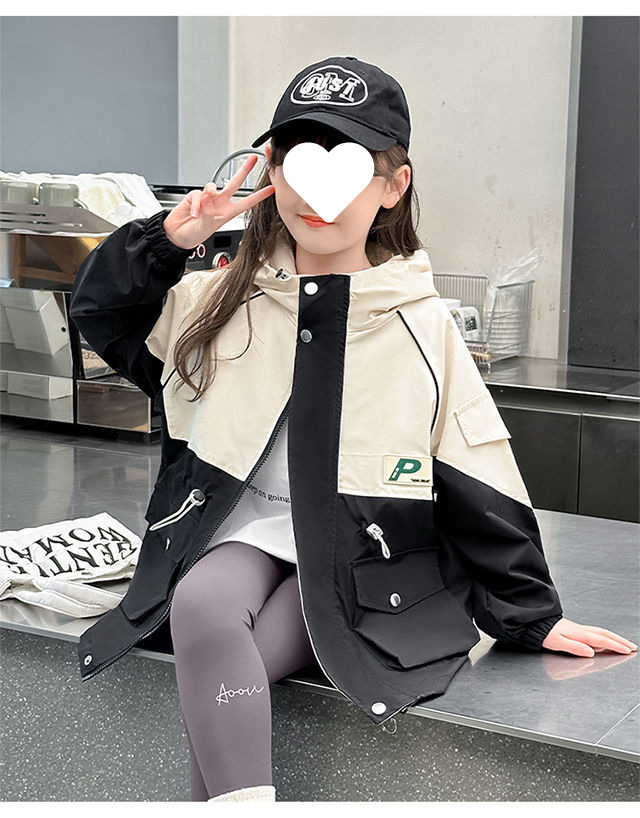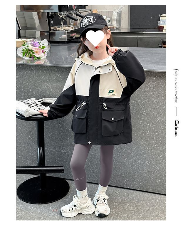 소녀의 봄과 가을 2025 한국 스타일 어린이 후드 윈드 브레이커 대형 어린이 스포츠 느슨한 소박한 옷 소녀의 방풍 외복스토어 가기