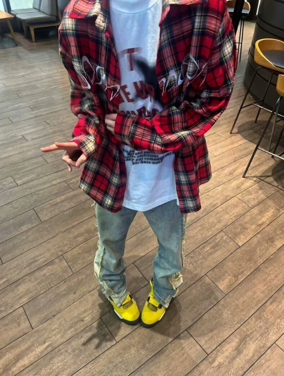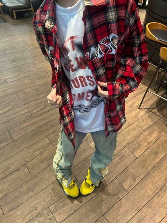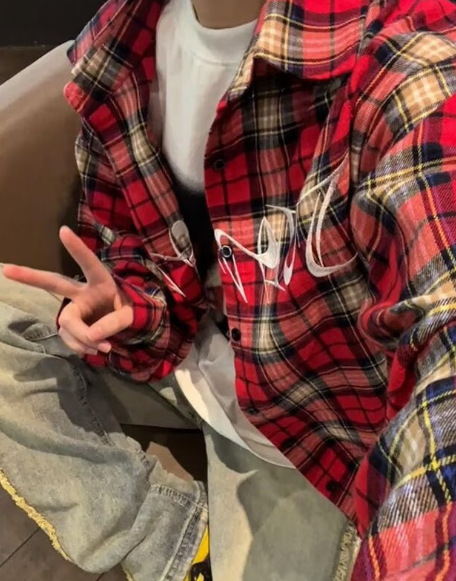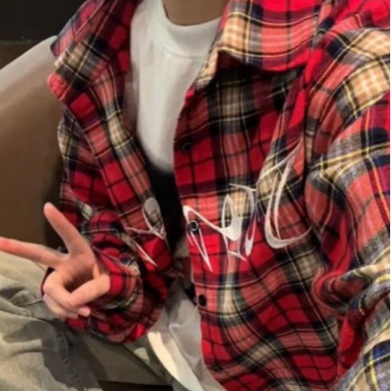 아메리칸 스타일 레트로 하이 스트리트 자수 레드 체크 무늬 긴 소매 셔츠 남성 빈티지 셔츠 웨스트 코스트 커플의 국가 패션스토어 가기