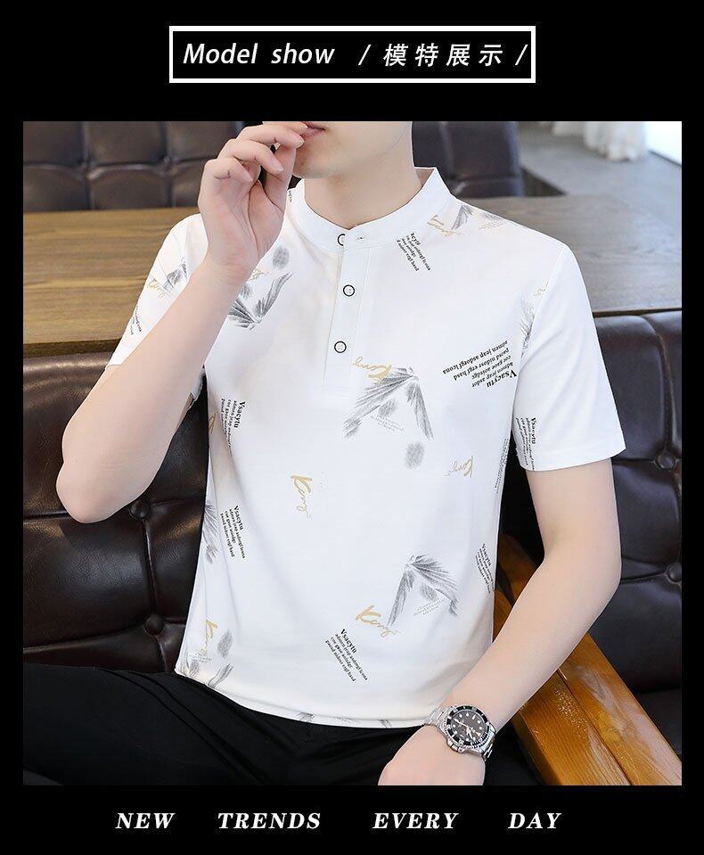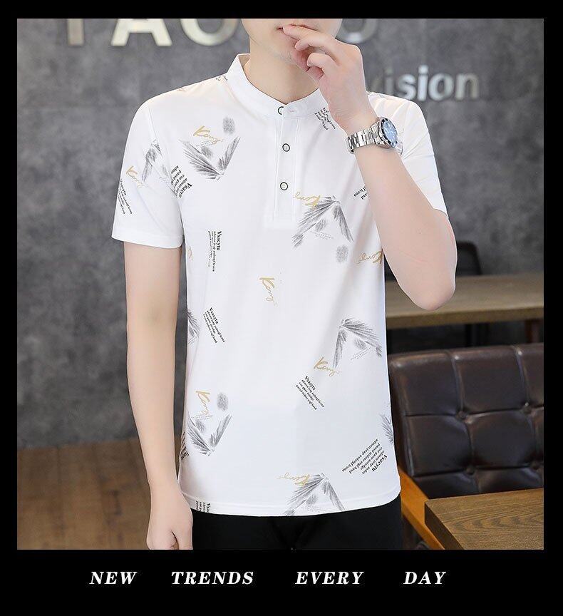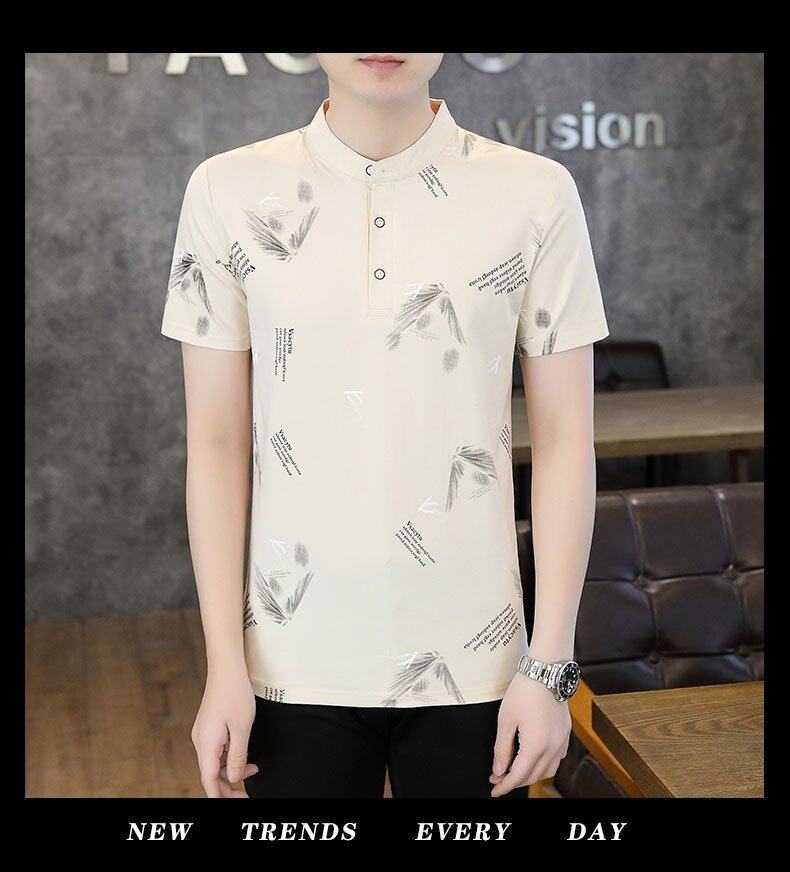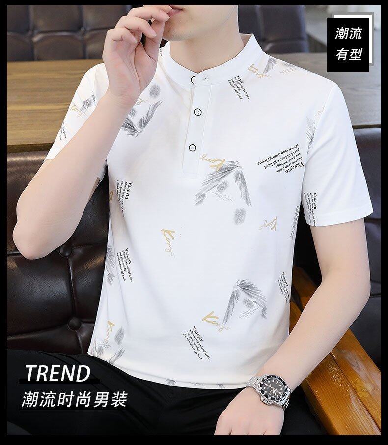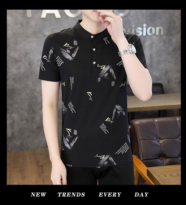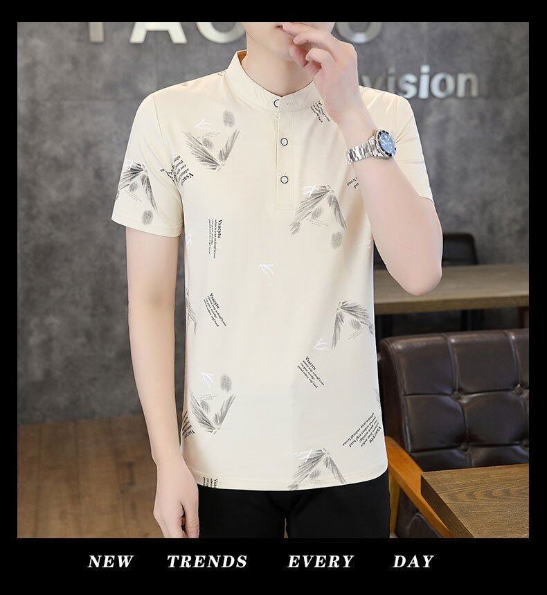 국경 간 대외 무역 AliExpress 남성 여름 [신규] 여름 캐주얼 패션 티셔츠 남성용 반팔 바닥 셔츠스토어 가기
