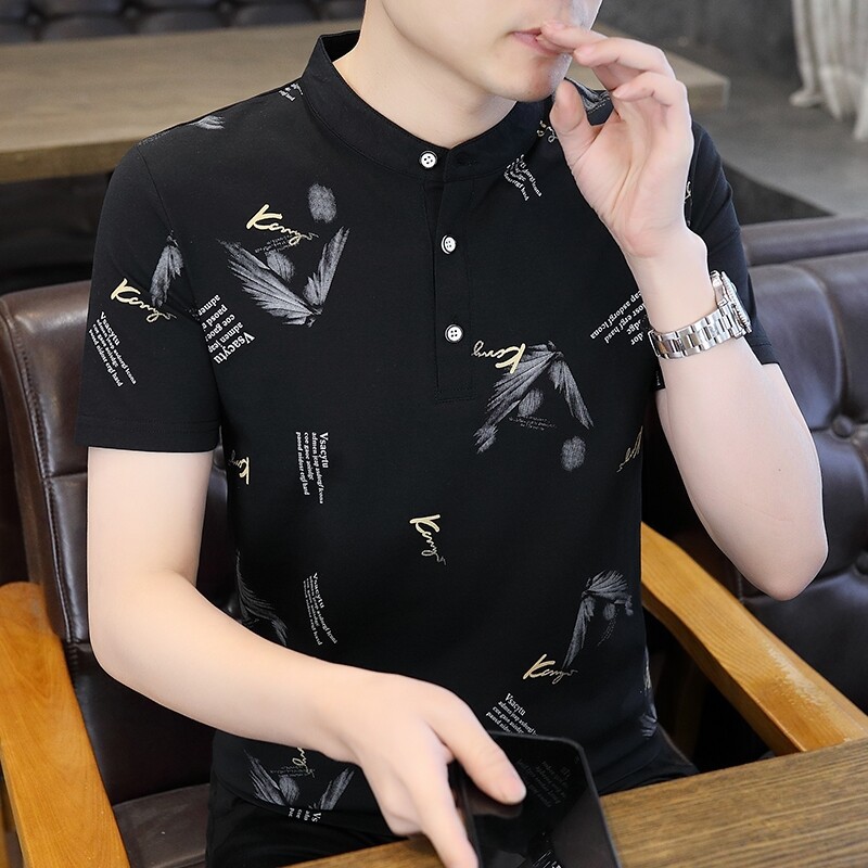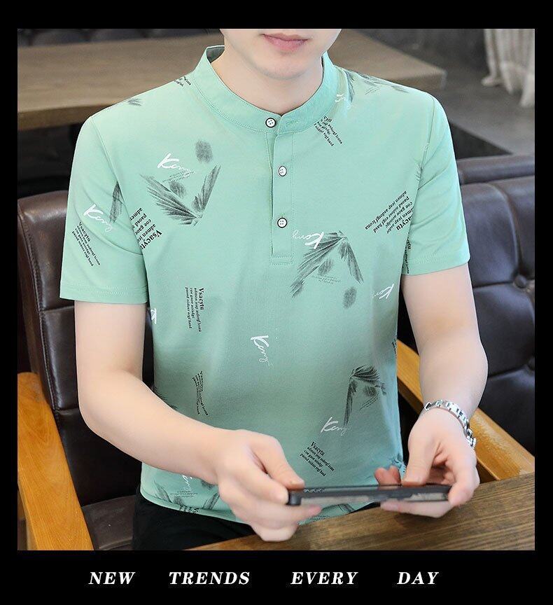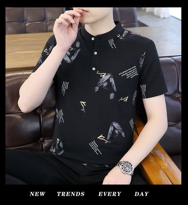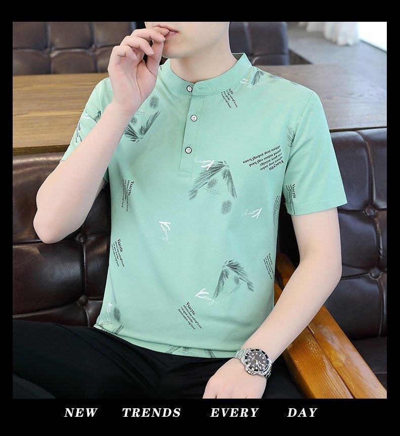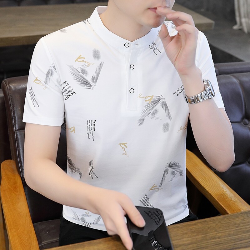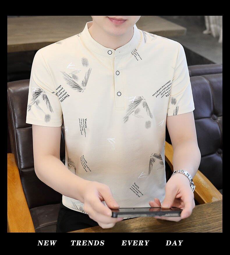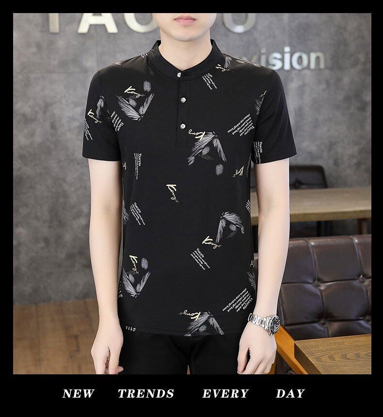 국경 간 대외 무역 AliExpress 남성 여름 [신규] 여름 캐주얼 패션 티셔츠 남성용 반팔 바닥 셔츠스토어 가기