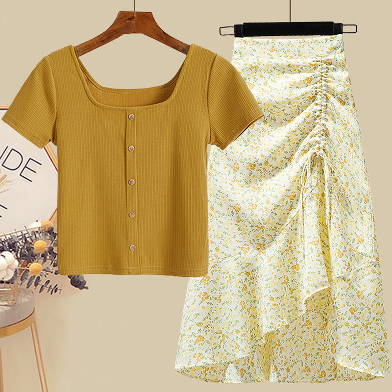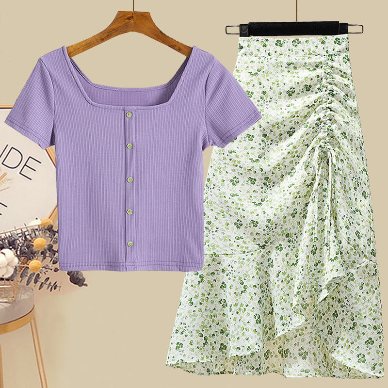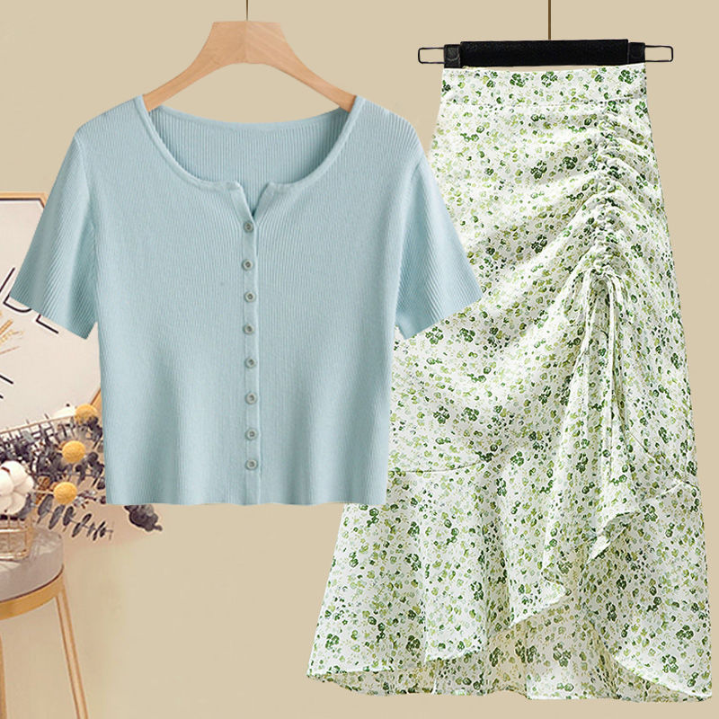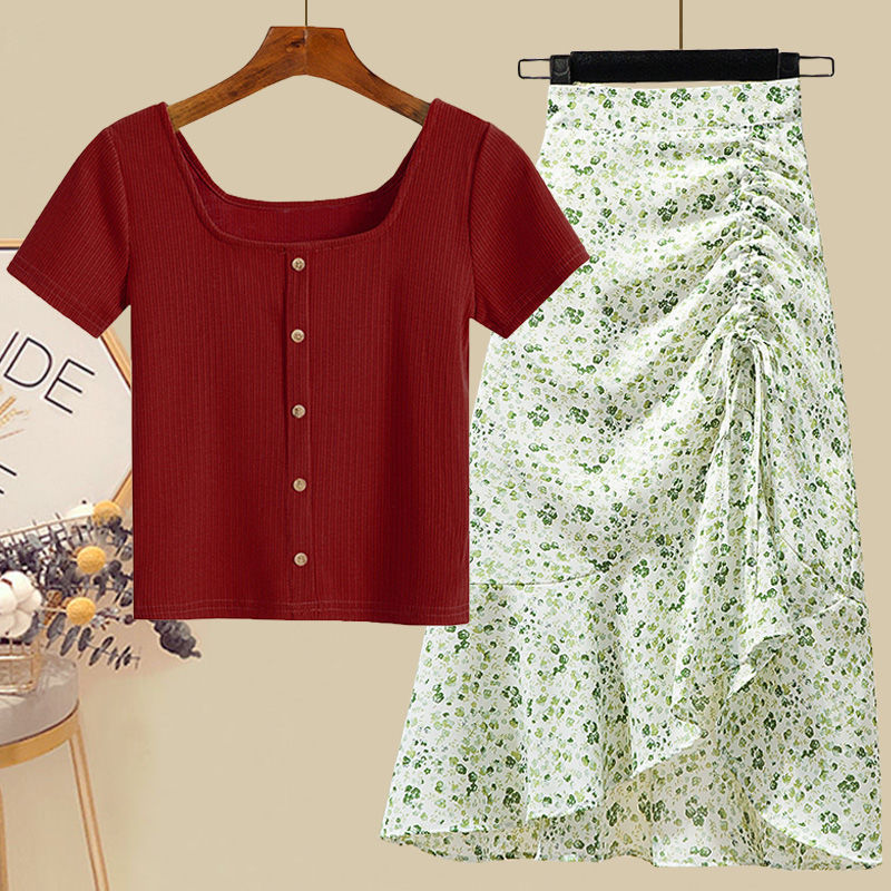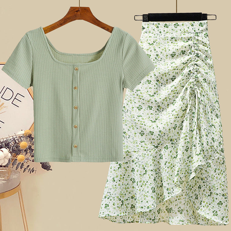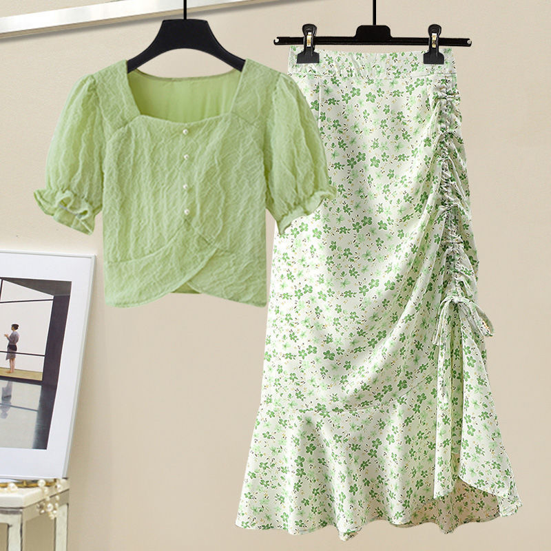 • 그린탑+그린 꽃무늬 스커트 [투피스세트]