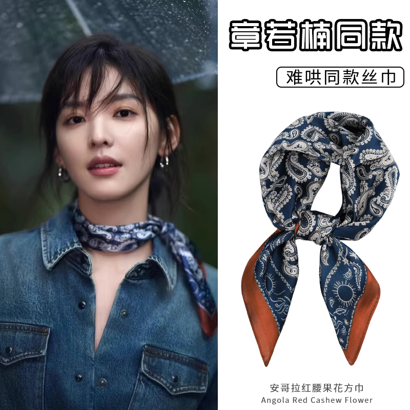 Zhang Ruonan 스카프 여성의 봄과 여름 2025 새로운 패션 하이 엔드 레트로 넥 작은 스퀘어 스카프 액세서리를 동원하는 것은 어렵습니다.