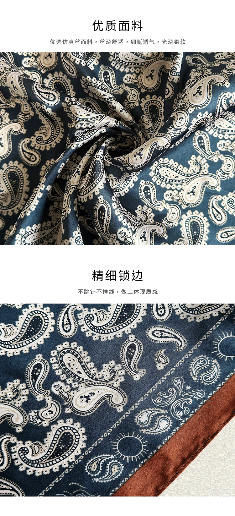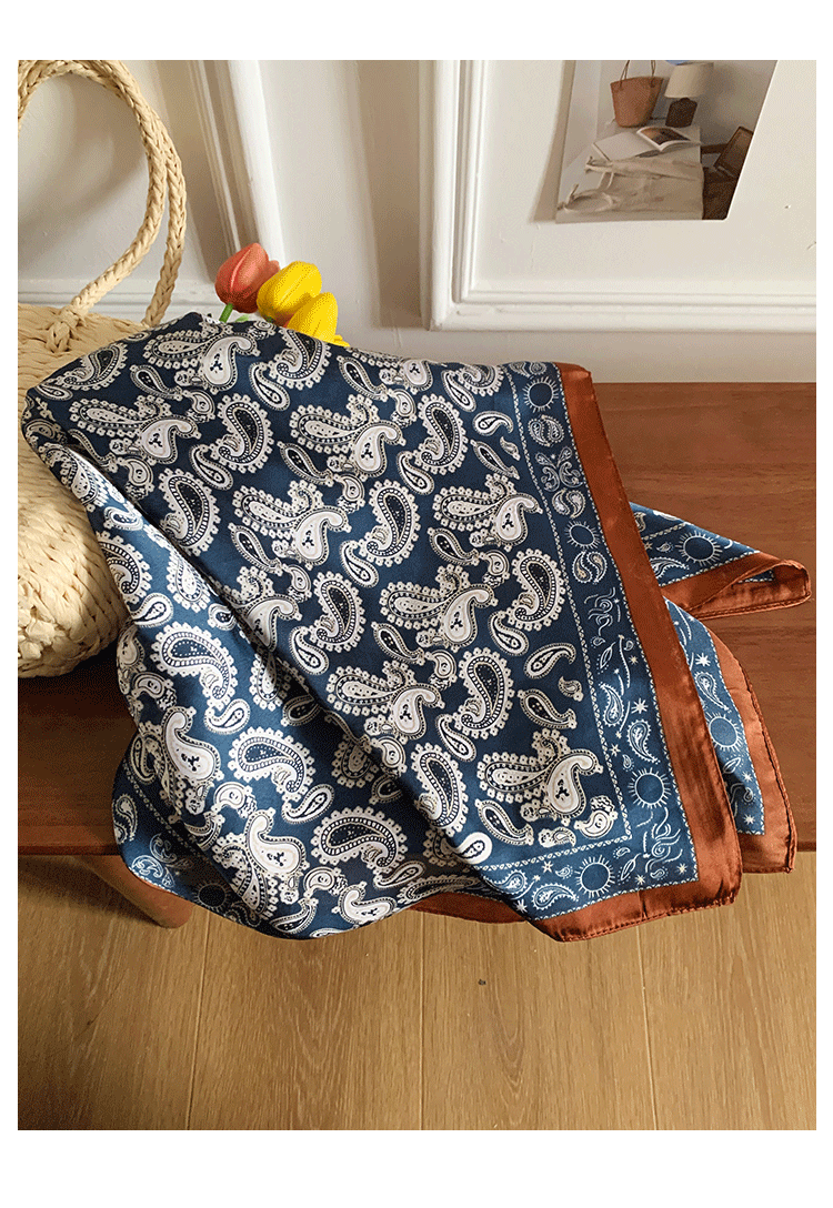 • 장루오난(Zhang Ruonan)과 같은 스타일 - 피콕 블루 캐슈 꽃 사각 스카프