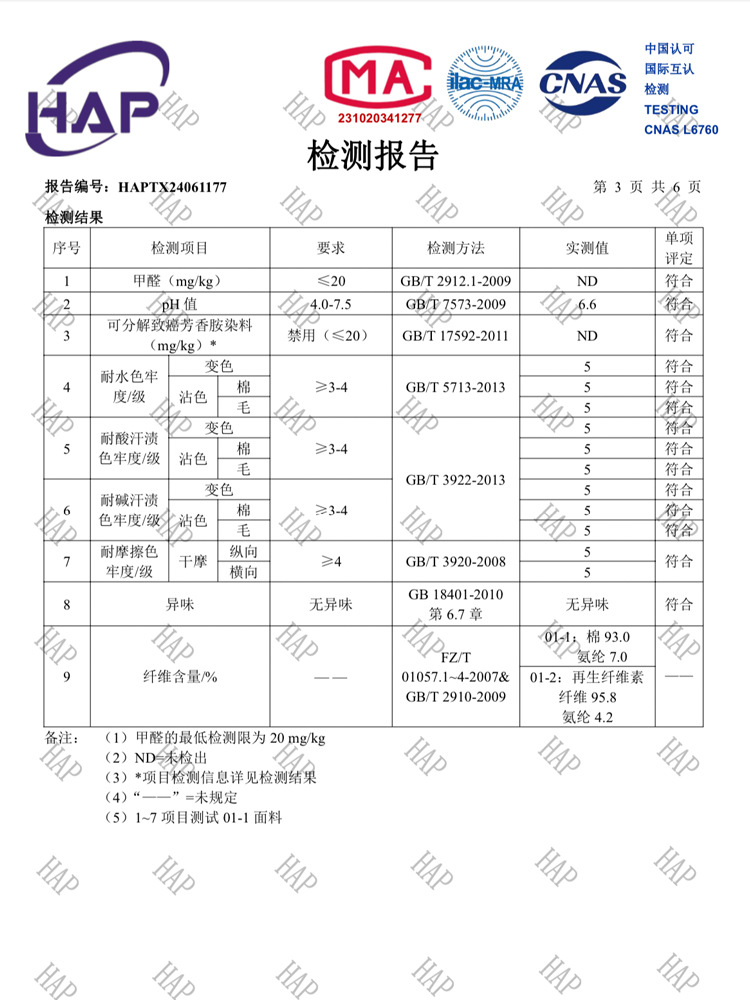 裤身:95%棉 5%氨纶