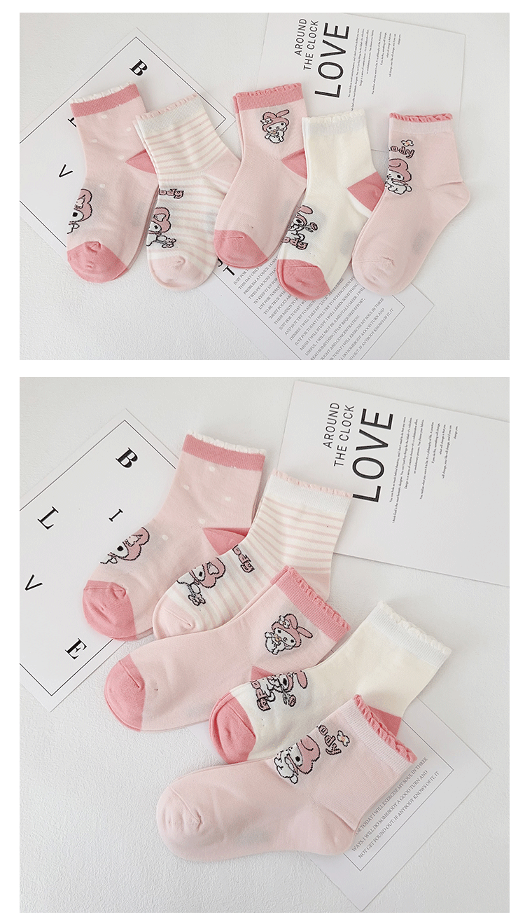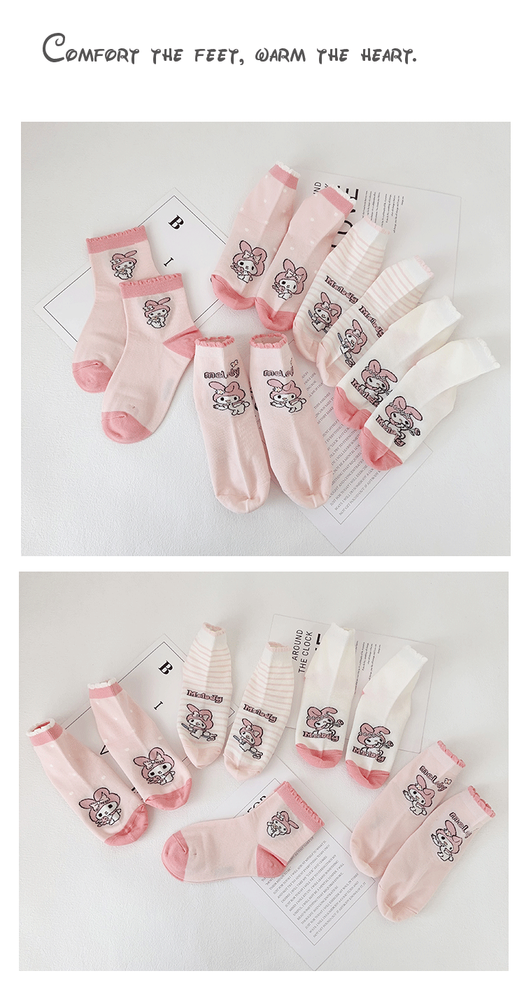 이순이 한 쌍의 어린이 양말 봄과 여름 새로운 만화 멜로디 양말이 면화 소녀 귀여운 뼈없는 아기 양말을 빗어