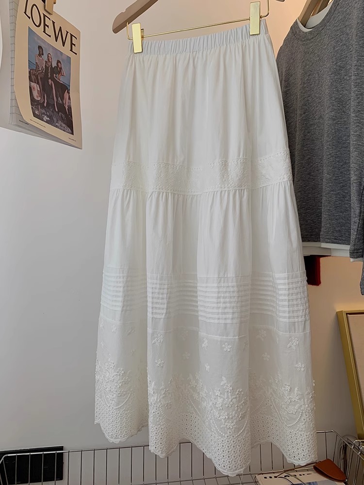 프랑스 레트로 화이트 레이스 자수 중장 스커트 2025 봄과 여름 새로운 도착 케이크 스커트 여성을위한 올 매치 우산 스커트