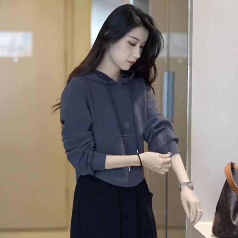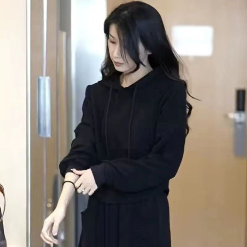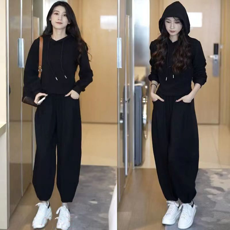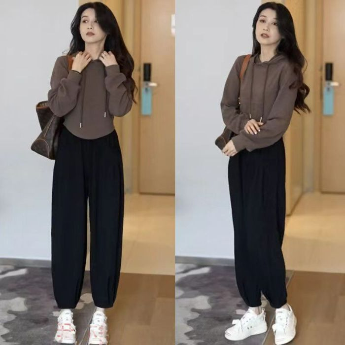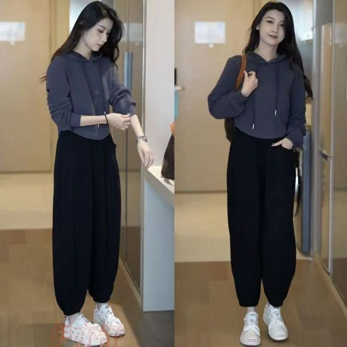 봄과 가을 느슨한 슬리밍 스웨터 바지 세트 여성용 소금 후드 탑 바나나 바지 2 종 노화 감소 캐주얼 커버스토어 가기