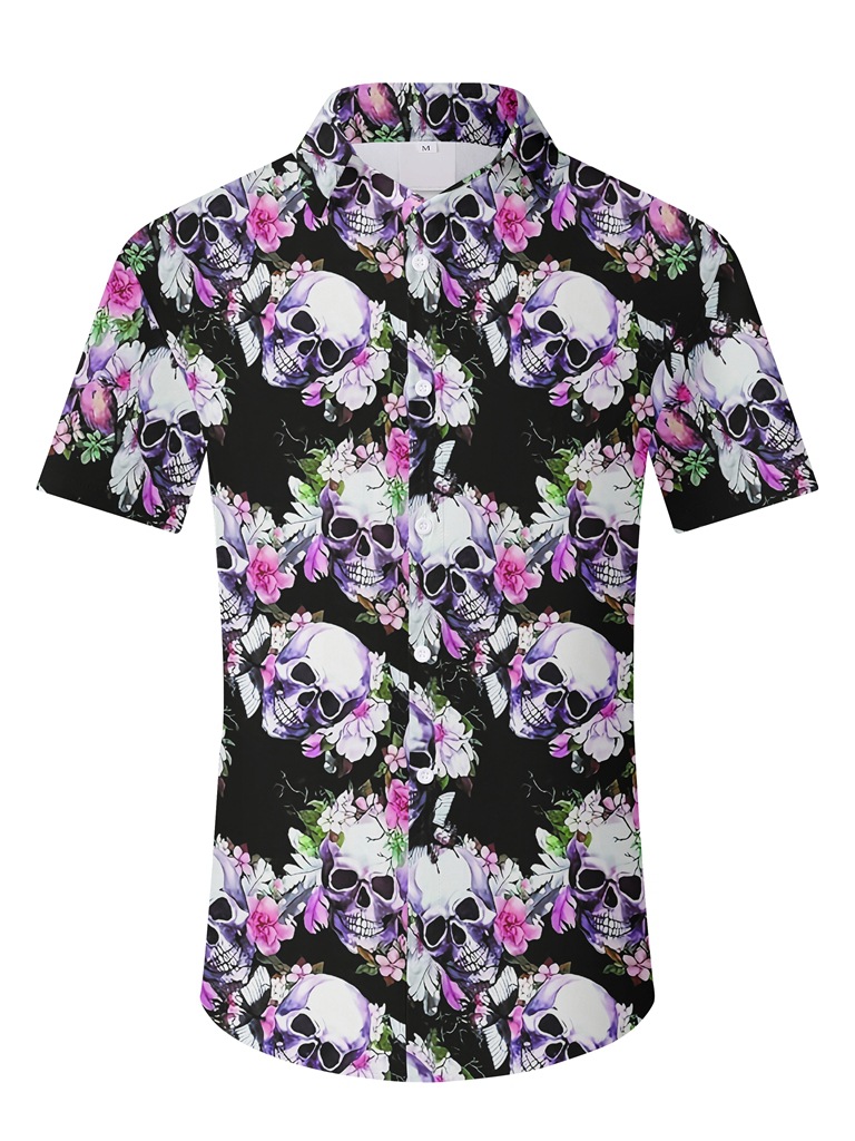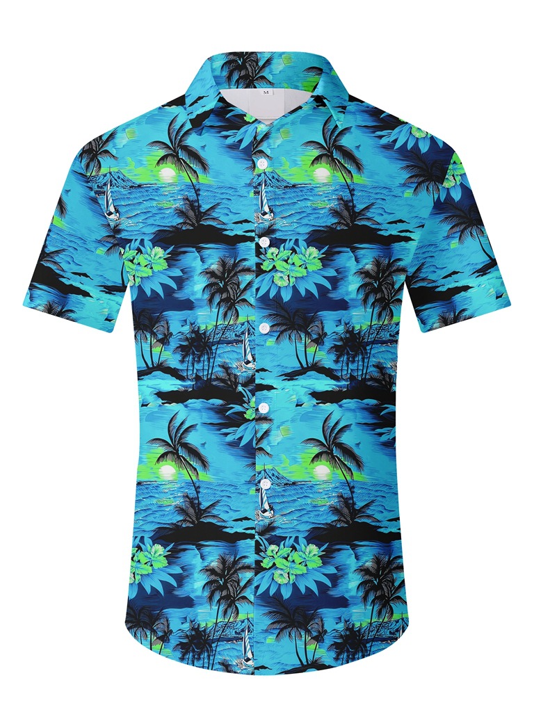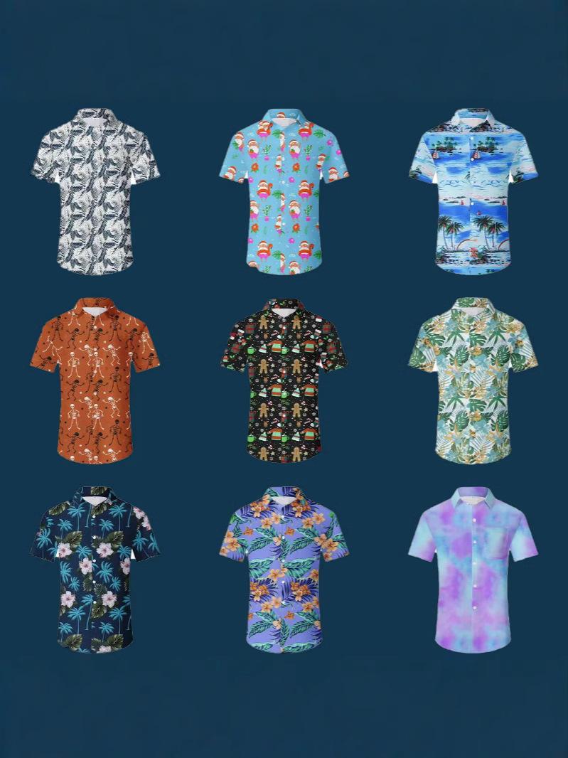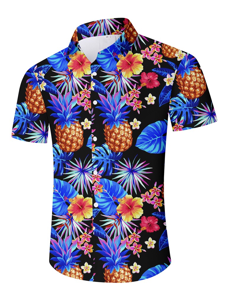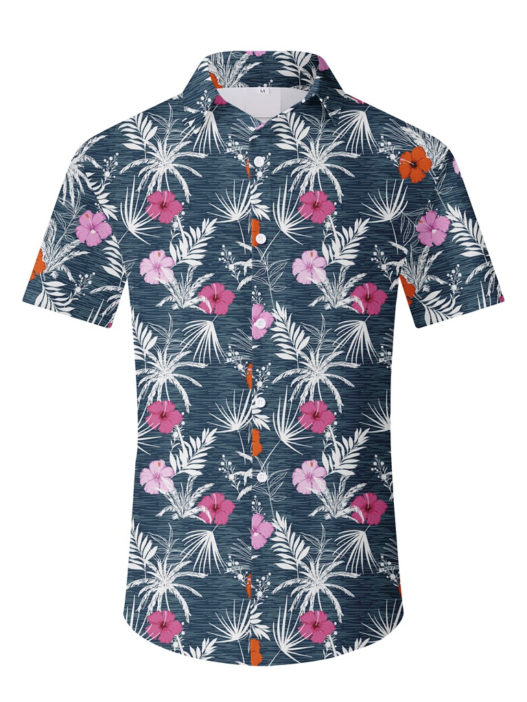 여름 신제품 하와이 남성 반팔 꽃 무늬 셔츠 세련된 유럽과 미국 사이즈 대외 무역 남성용 3D 꽃 무늬 반팔 셔츠