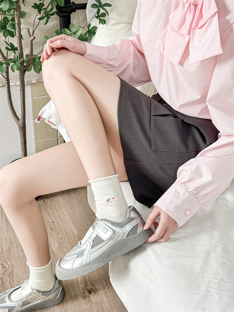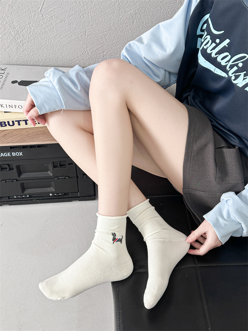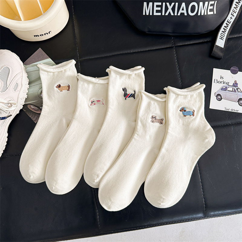 자수 닥스 훈트 개 화이트 양말 여성 컬링 일본식 여성 스택 양말 한국 스타일 만화 귀여운 강아지 미드 양말 면화스토어 가기