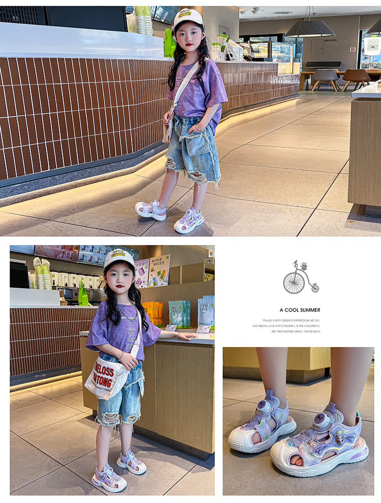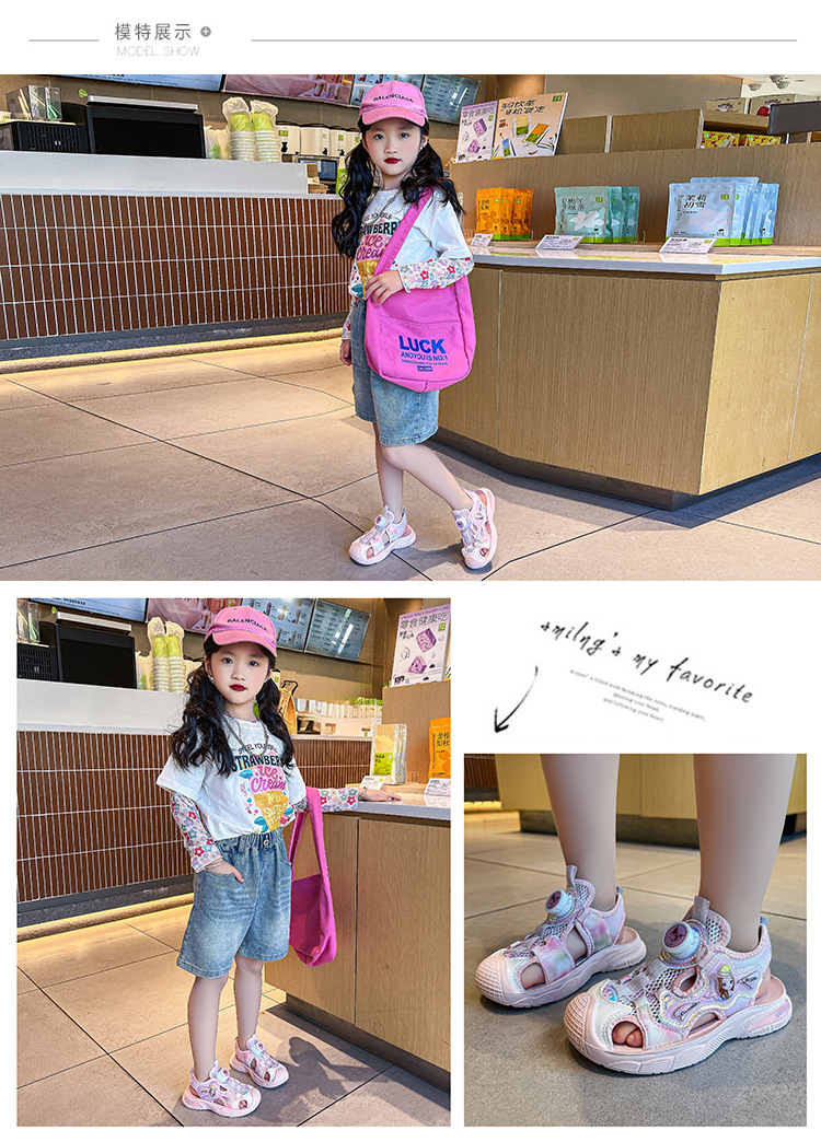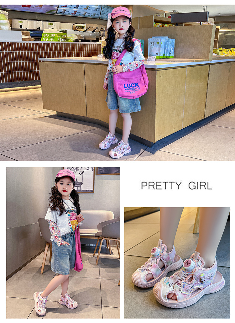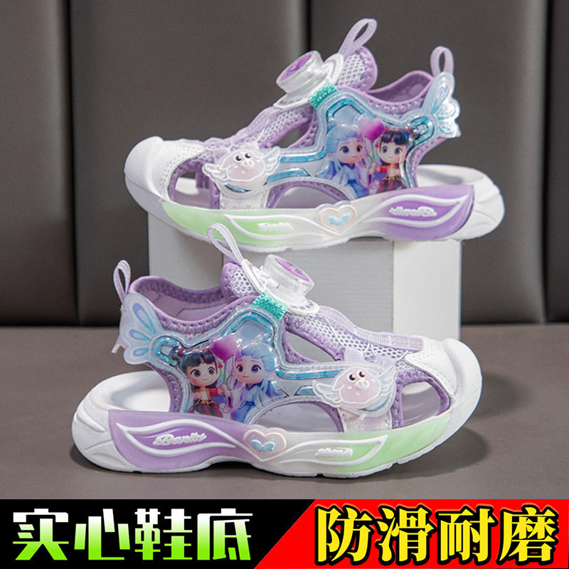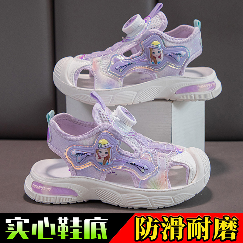 소녀 발가락 샌들 여름 어린이 해변 신발 2025 새로운 만화 어린이 신발 미끄럼 방지 소프트 단독 소녀 공주 신발스토어 가기