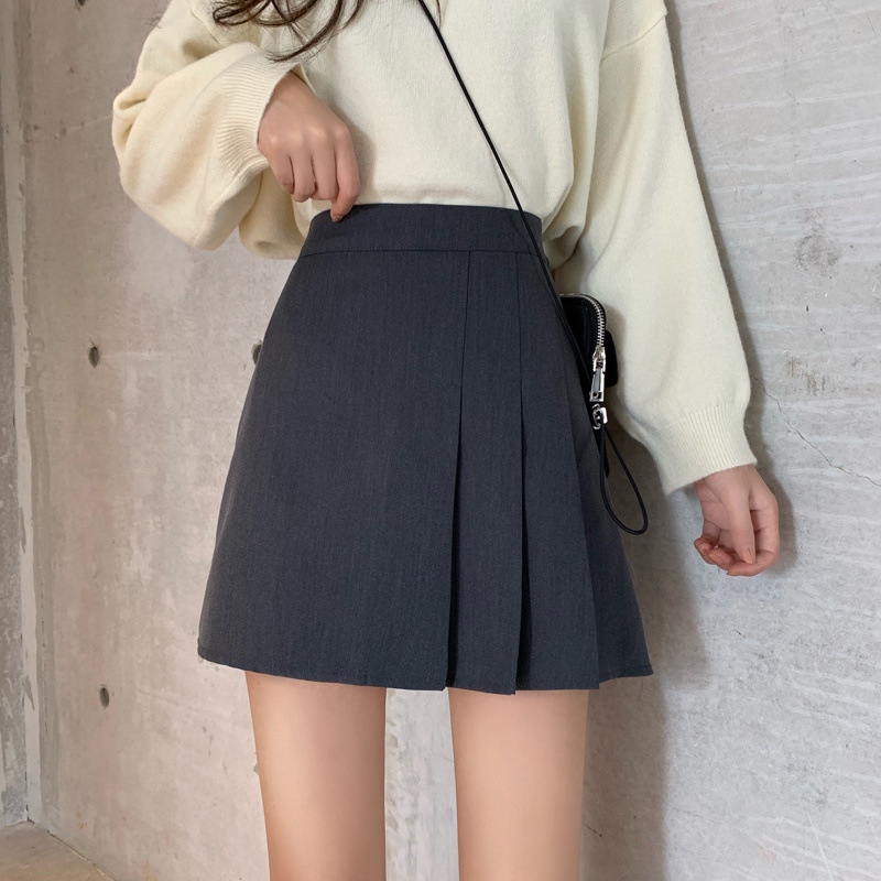 150 얇은 작은 높은 허리 A 라인 미니 스커트 불규칙한 반 주름 스커트 145xs 높은 착용 JK 가을 원피스스토어 가기