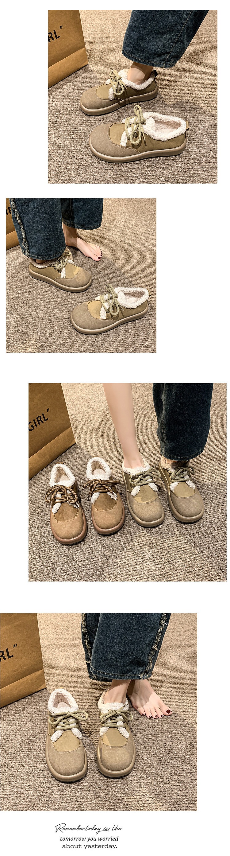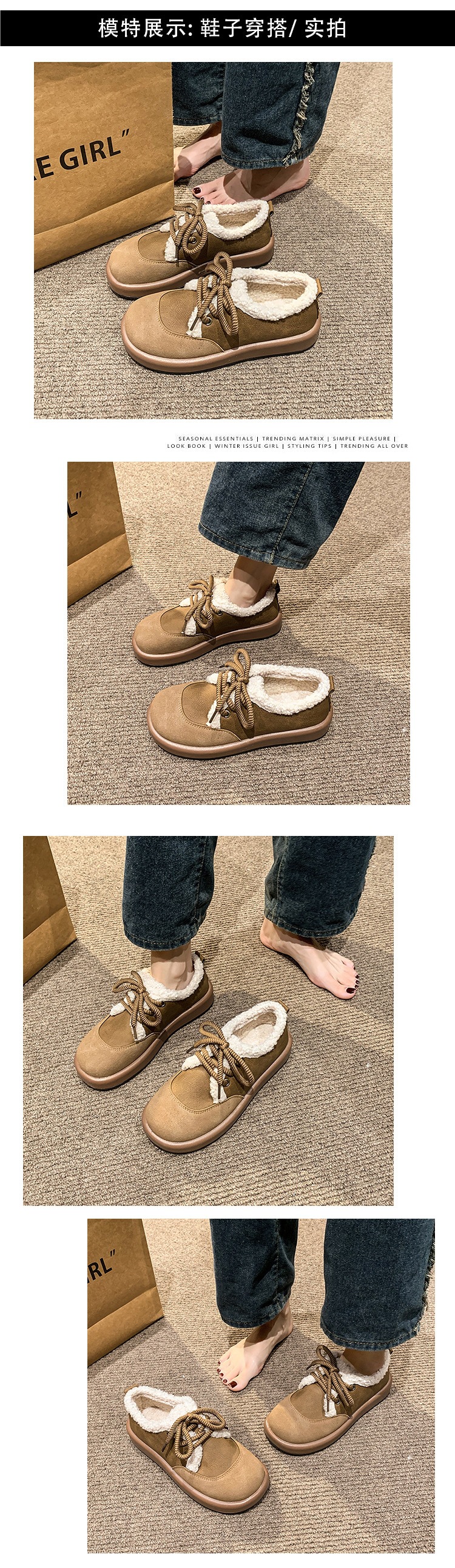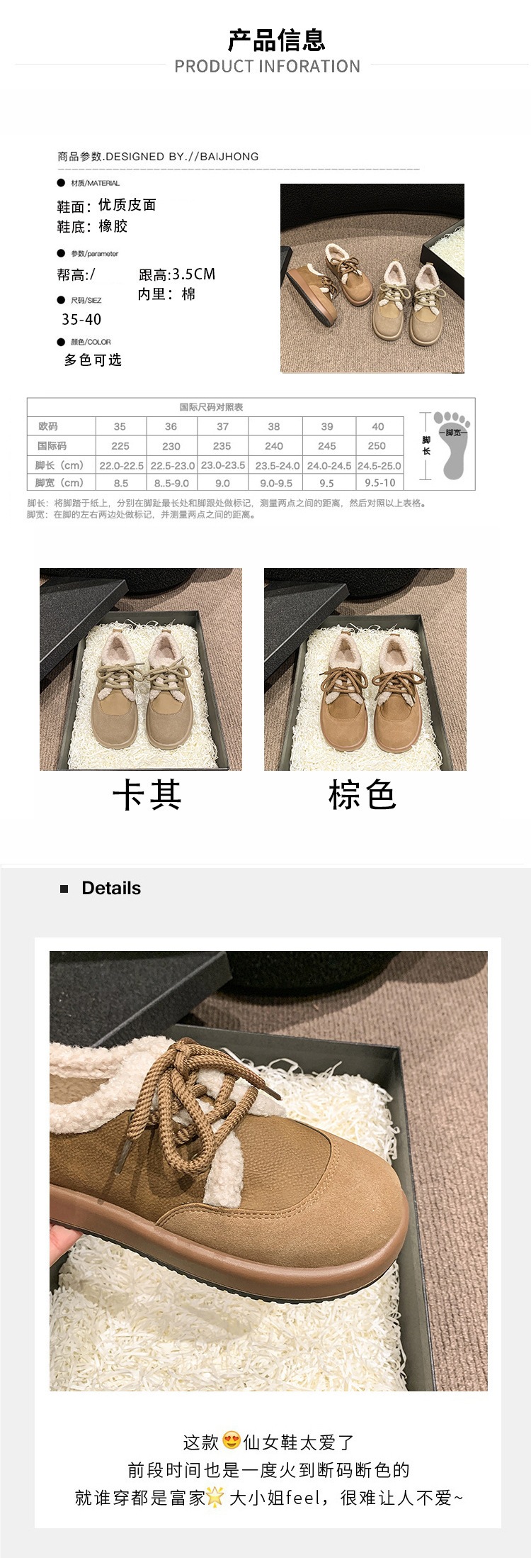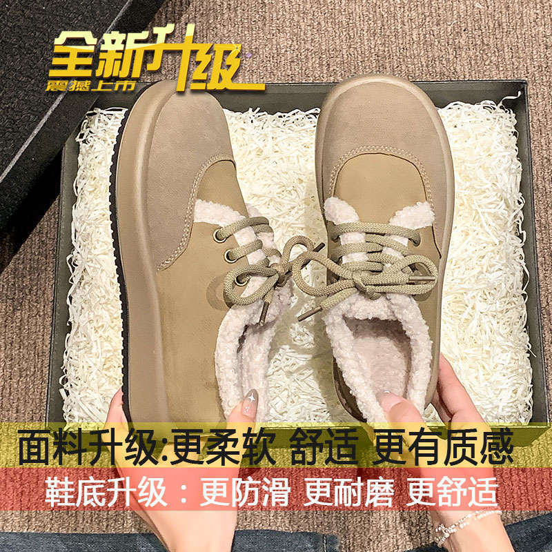 빈티지 Maillard Burkon 신발 여성 신발 2024 새로운 가을과 겨울 기모 따뜻한 마오 마오 신발 소프트 솔 레이스 업 코튼 신발스토어 가기