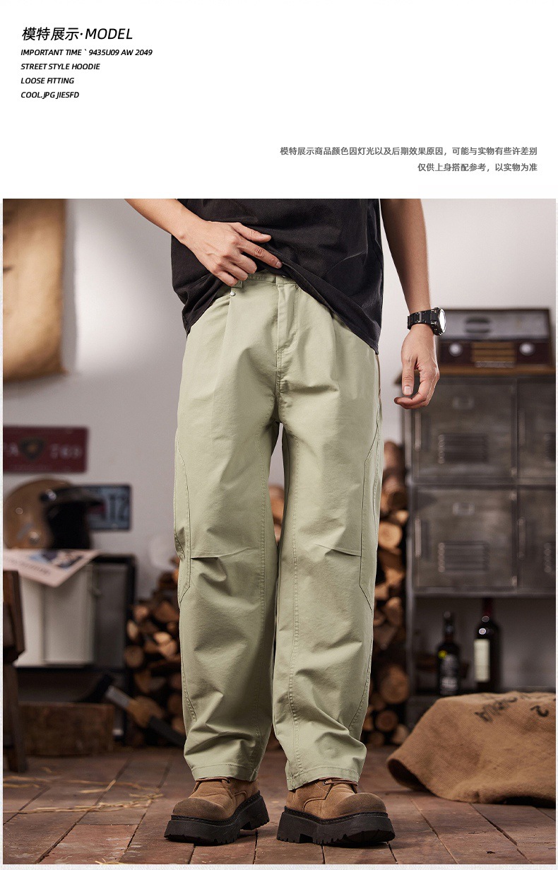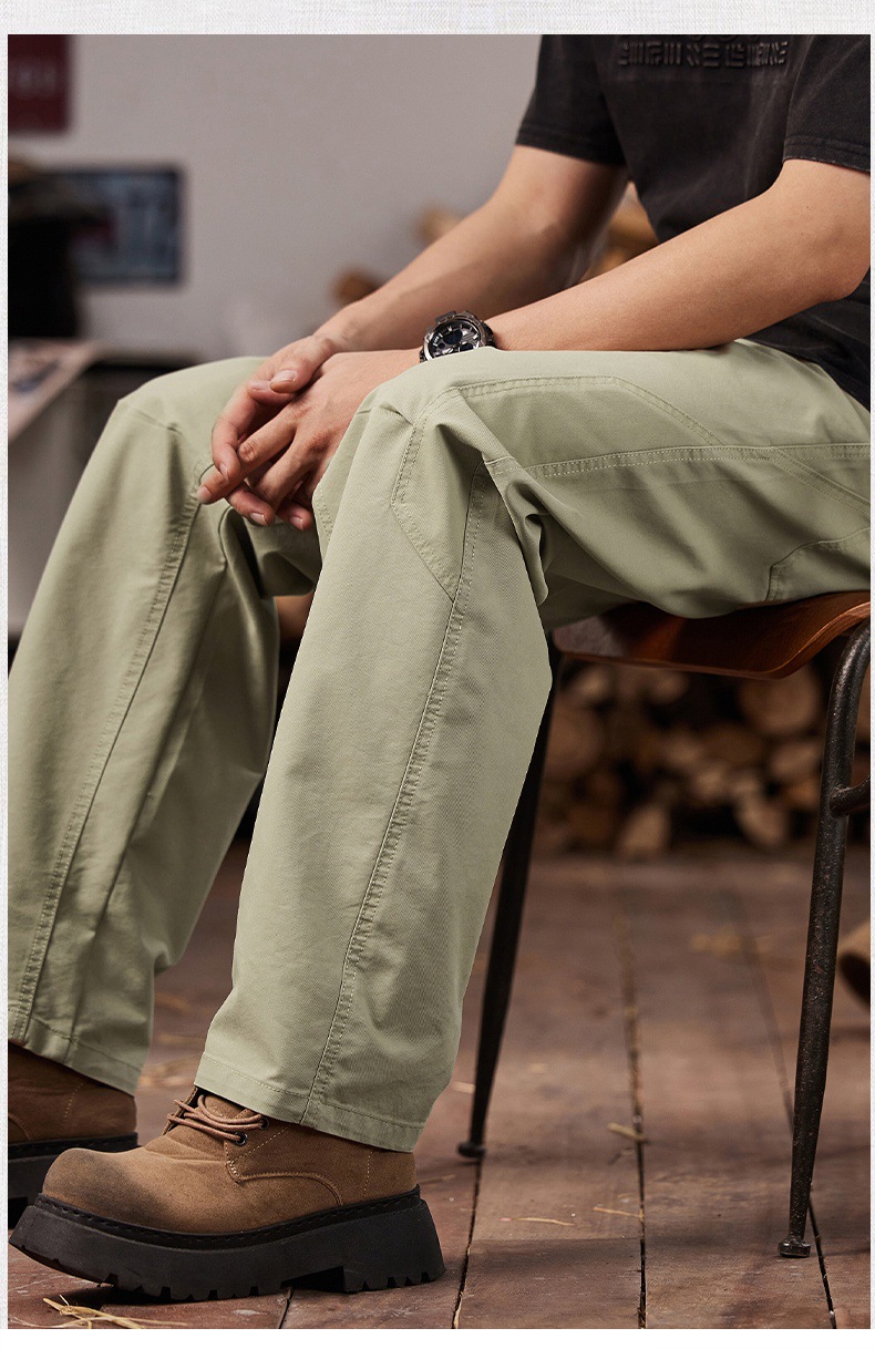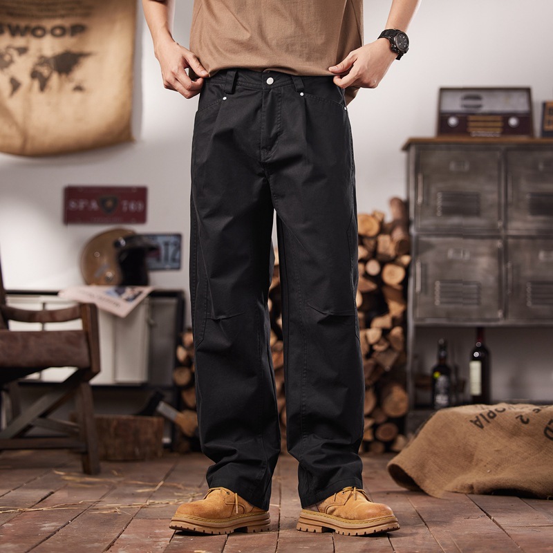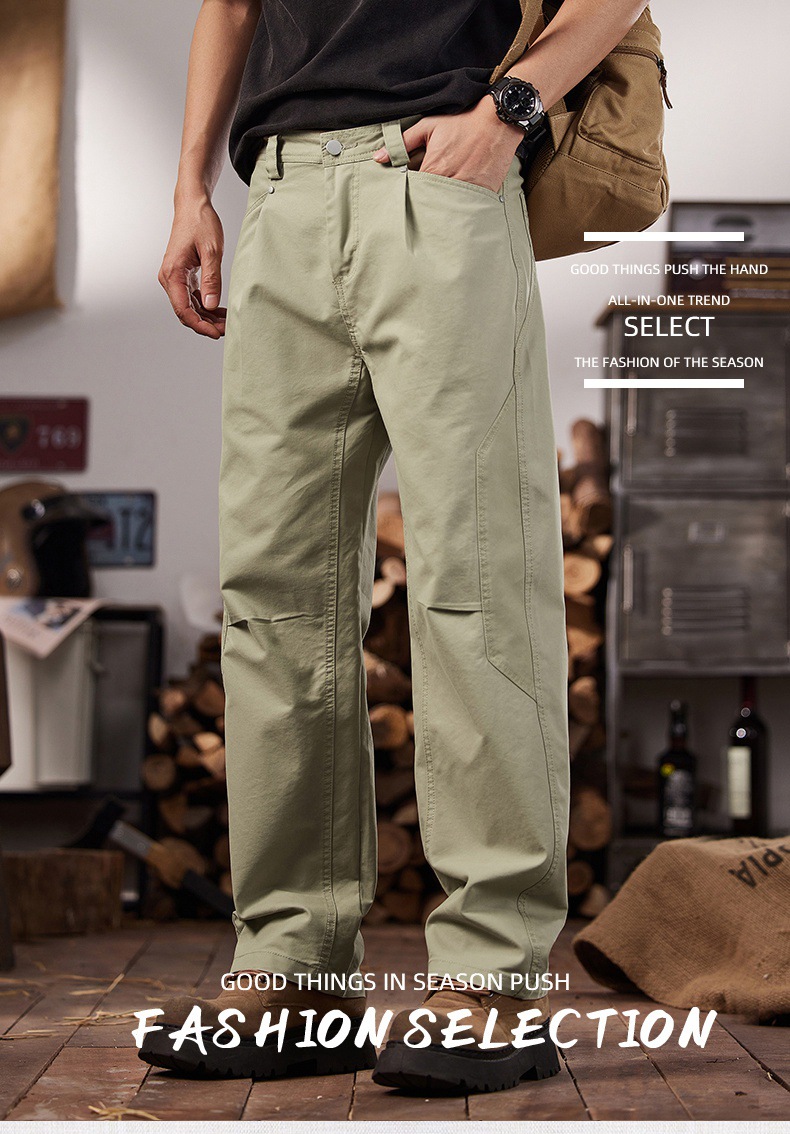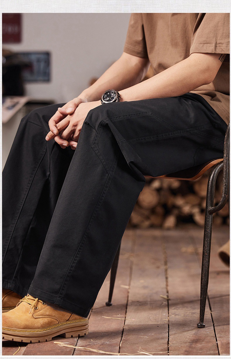 면 세척 짠 캐주얼 바지 남자 봄과 여름 2025 느슨한 스트레이트 트렌디 남성용 올 매치 와이드 레그 작업 바지스토어 가기