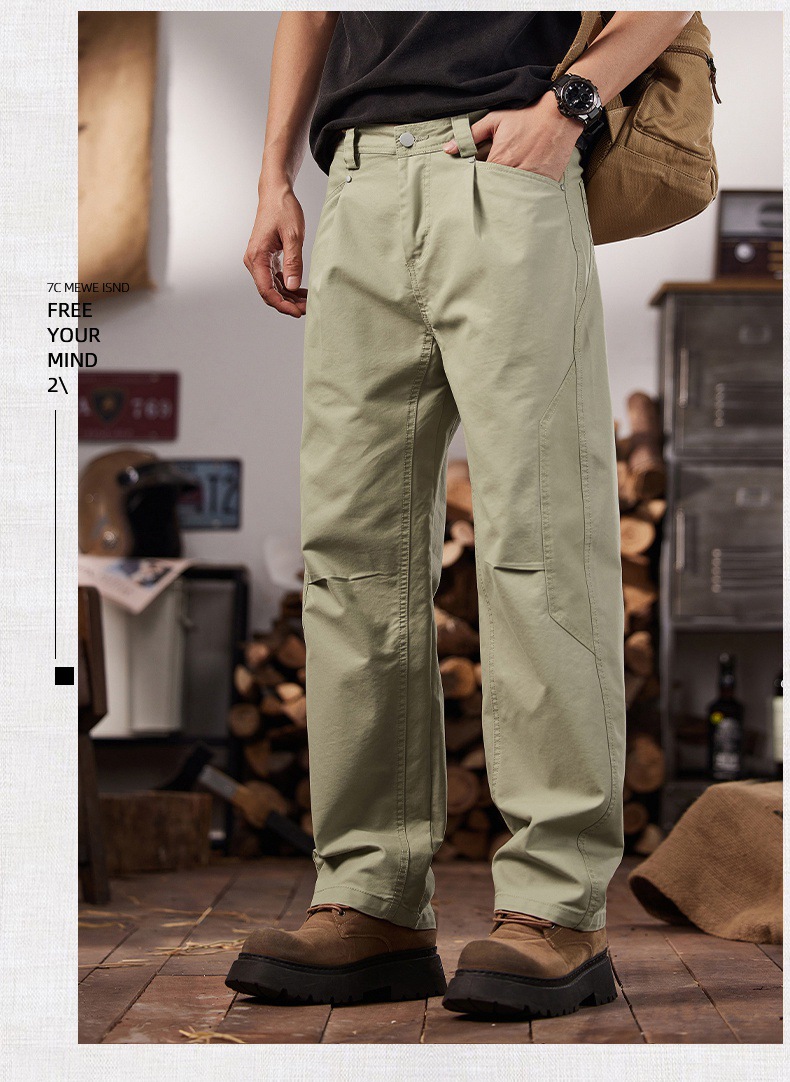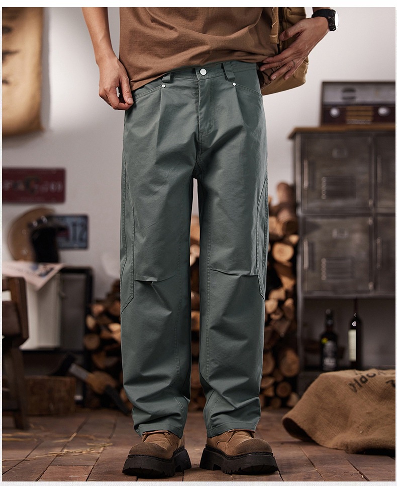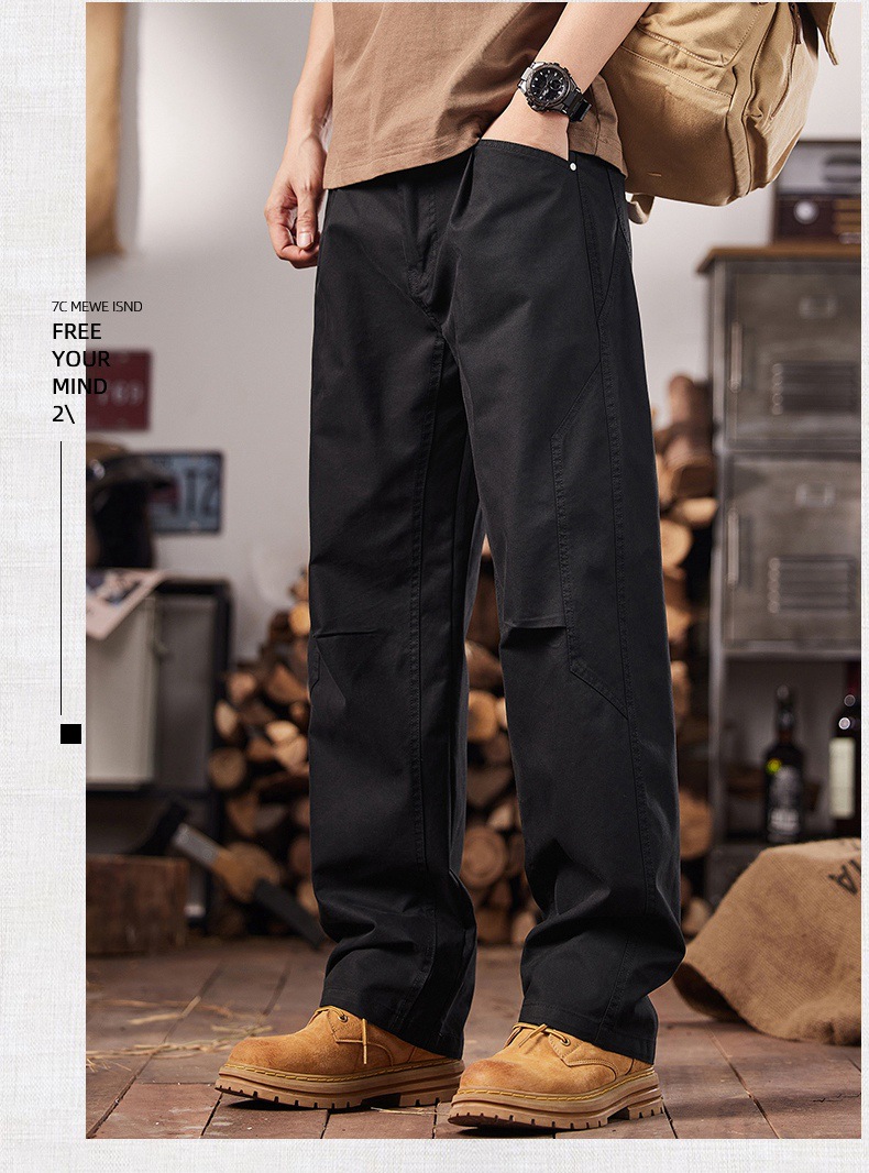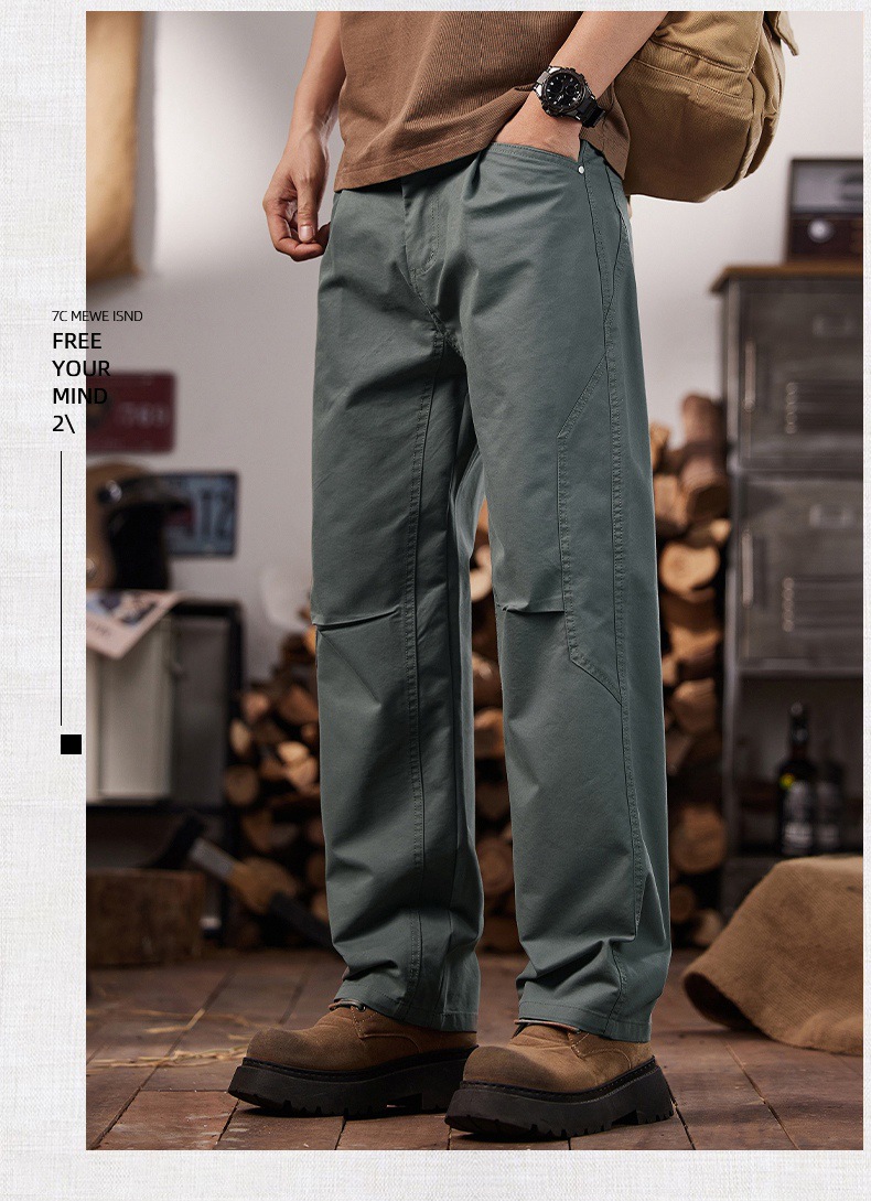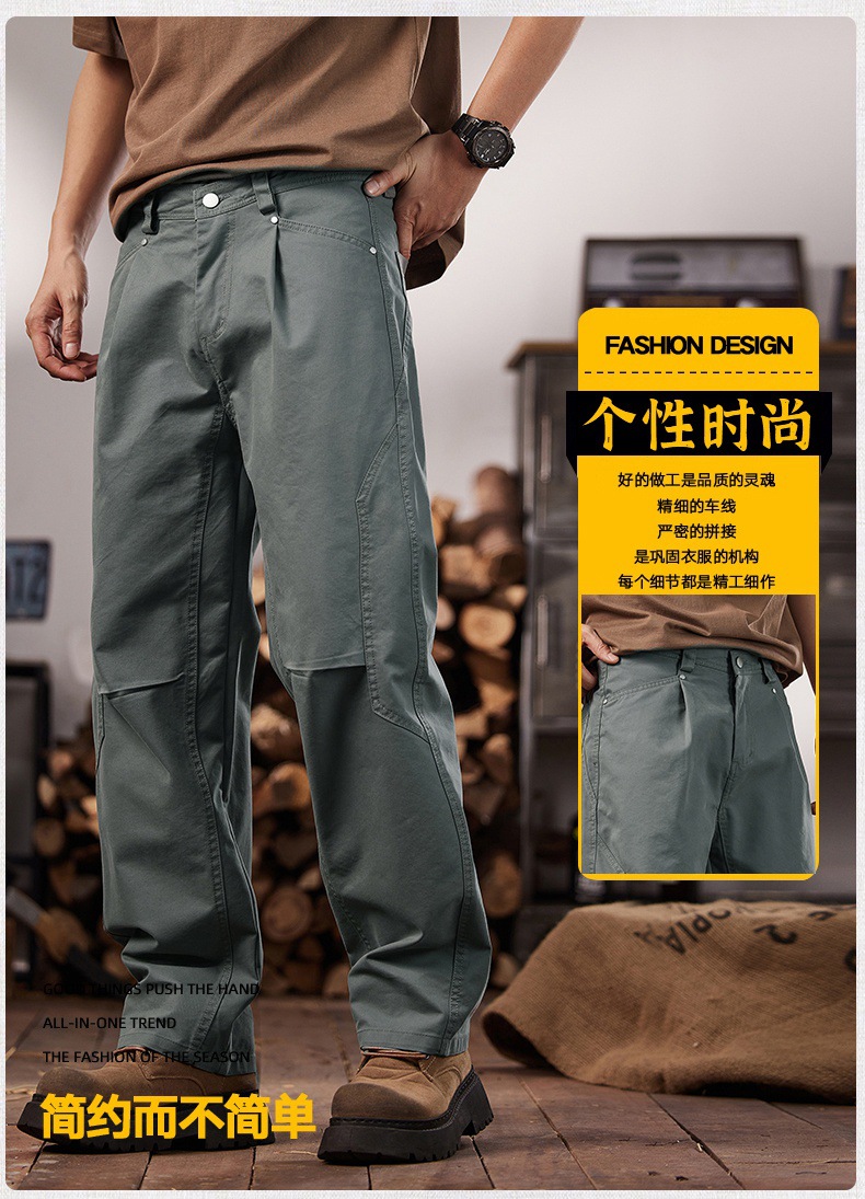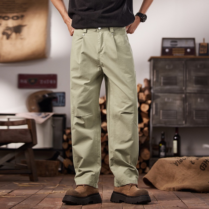 면 세척 짠 캐주얼 바지 남자 봄과 여름 2025 느슨한 스트레이트 트렌디 남성용 올 매치 와이드 레그 작업 바지스토어 가기