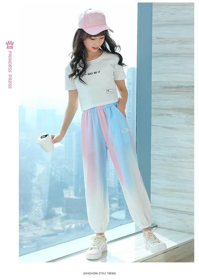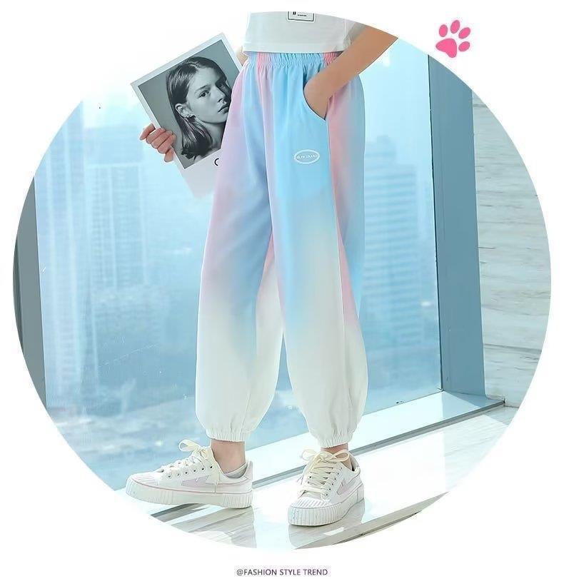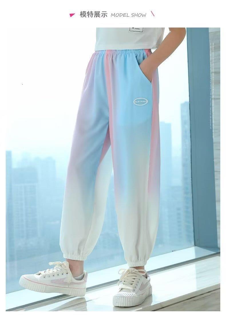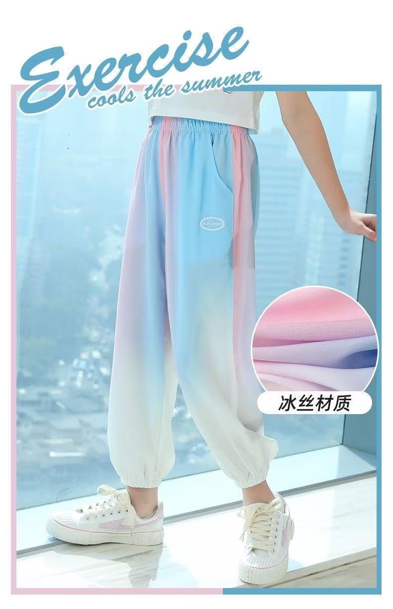 소녀 바지 2025 여름 새로운 서양식 아이스 실크 바지 큰 어린이 느슨한 모기 방지 바지 여름 얇은 빠른 건조 바지스토어 가기