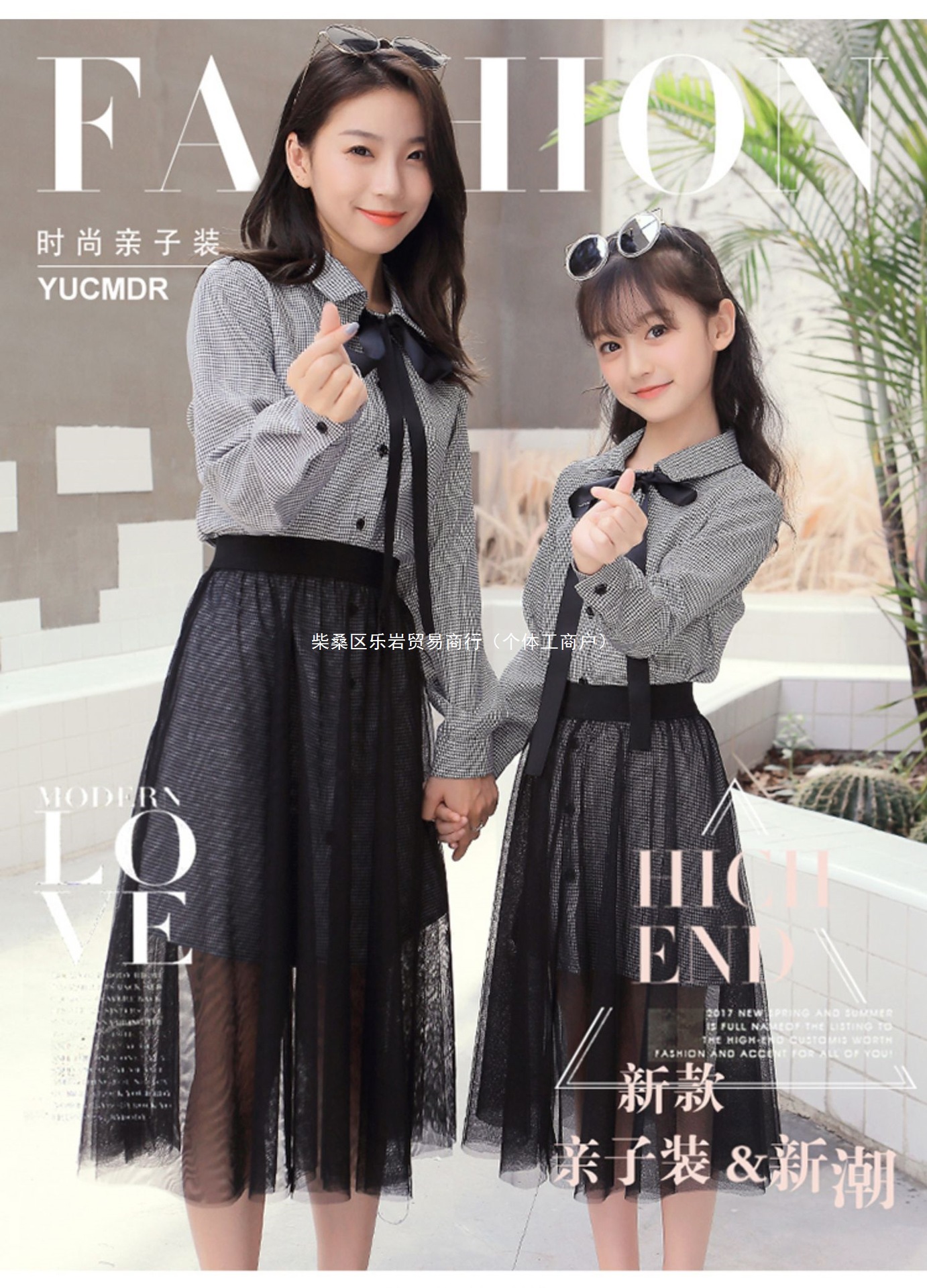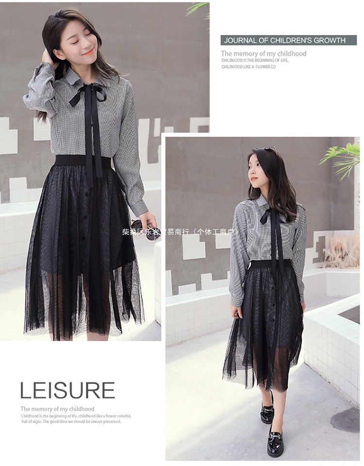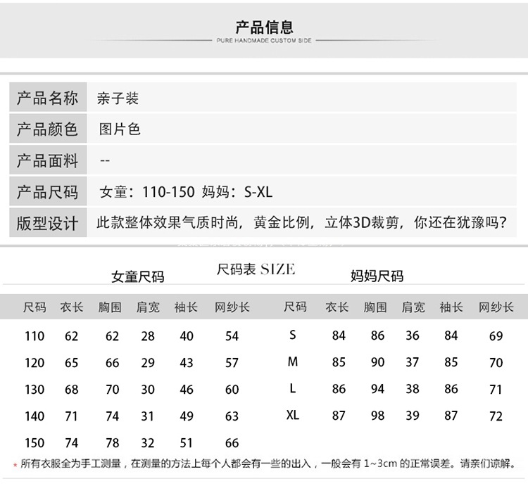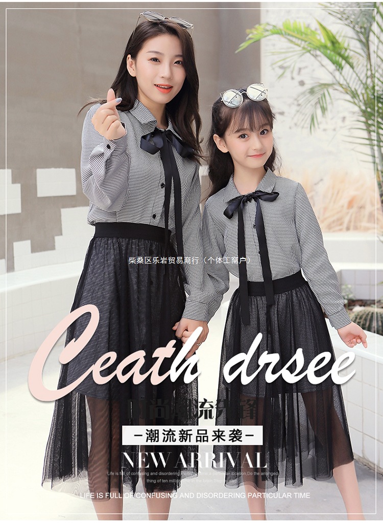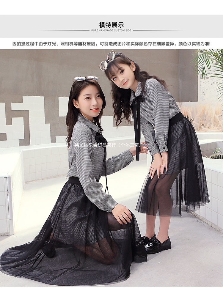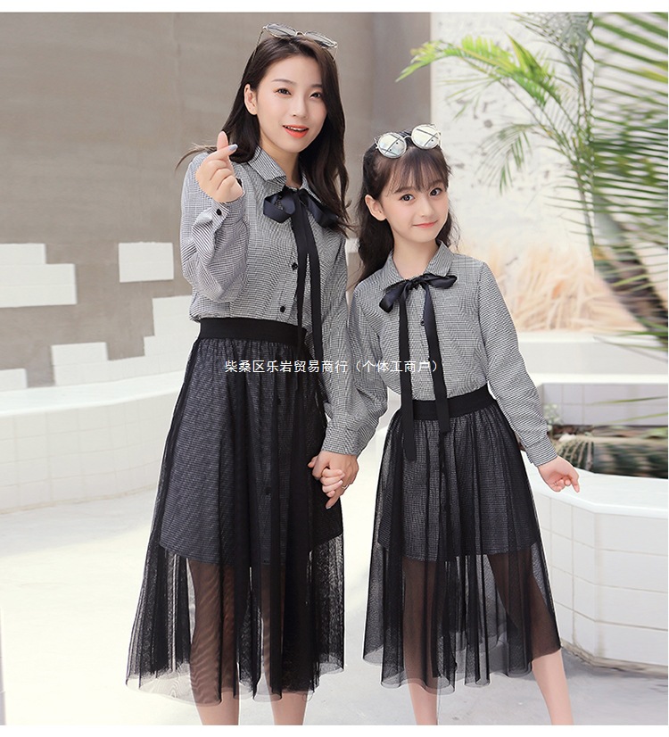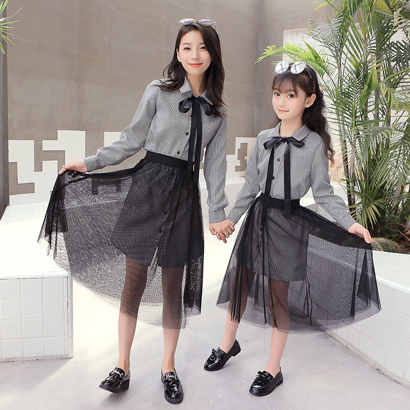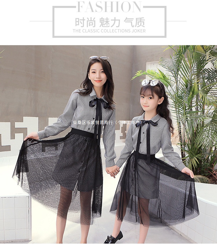 2025 봄과 가을 새로운 그물 빨간 부모-자식 원피스 외국 스타일의 어머니와 여성의 원피스 숲 가을 메쉬 세트 도매