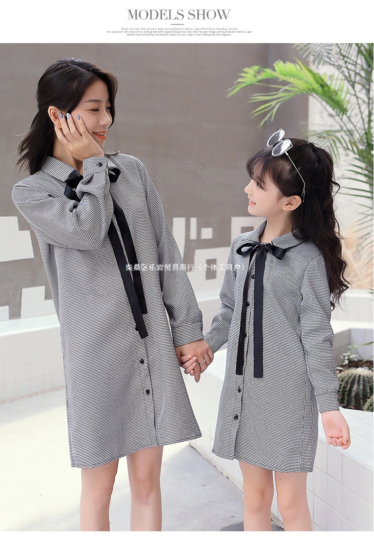 2025 봄과 가을 새로운 그물 빨간 부모-자식 원피스 외국 스타일의 어머니와 여성의 원피스 숲 가을 메쉬 세트 도매스토어 가기