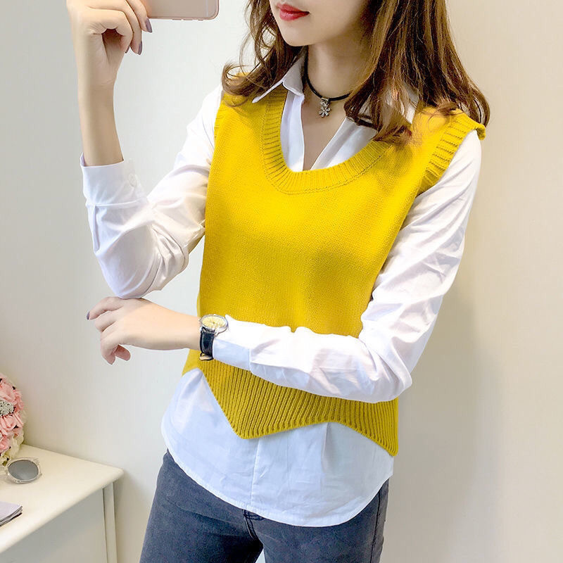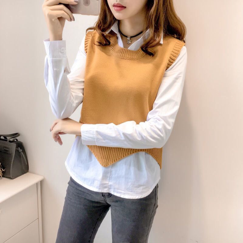 스웨터 조끼 셔츠 민소매 2025 봄 가을 얇은 패션 세트 여성을위한 한국 느슨한 니트 조끼 탑스토어 가기