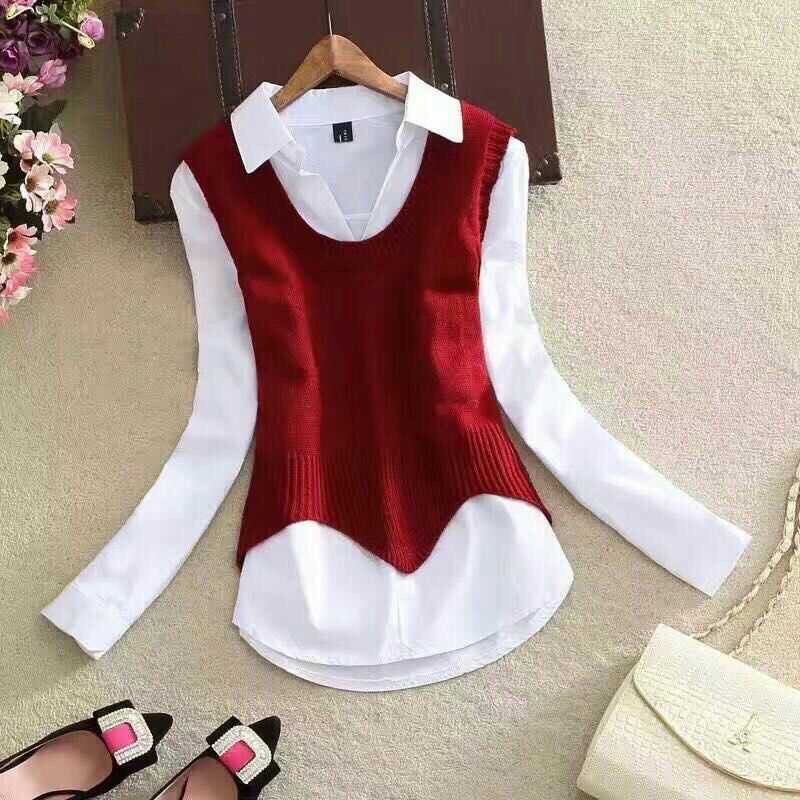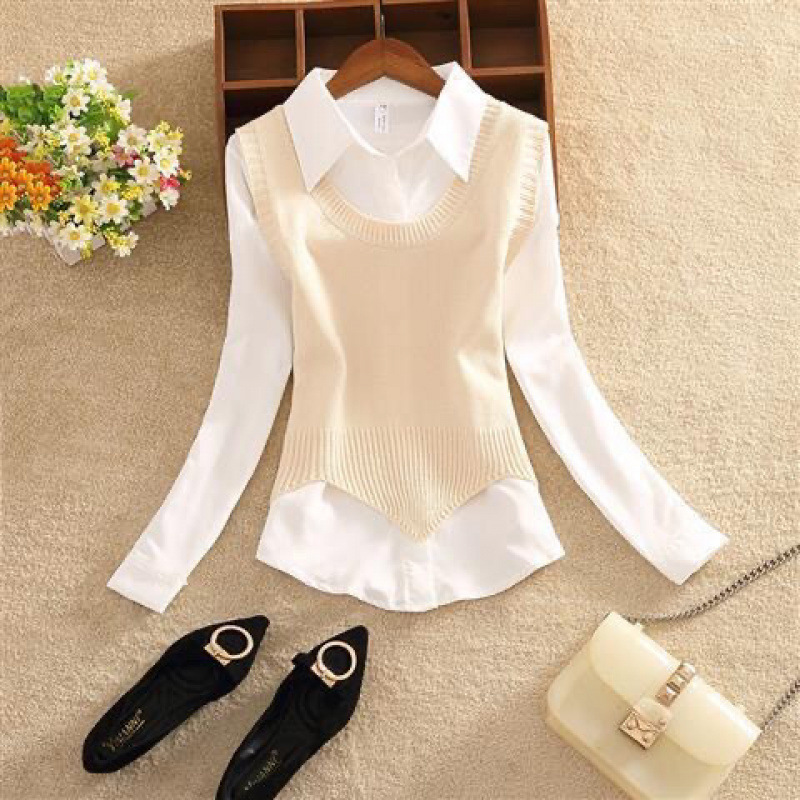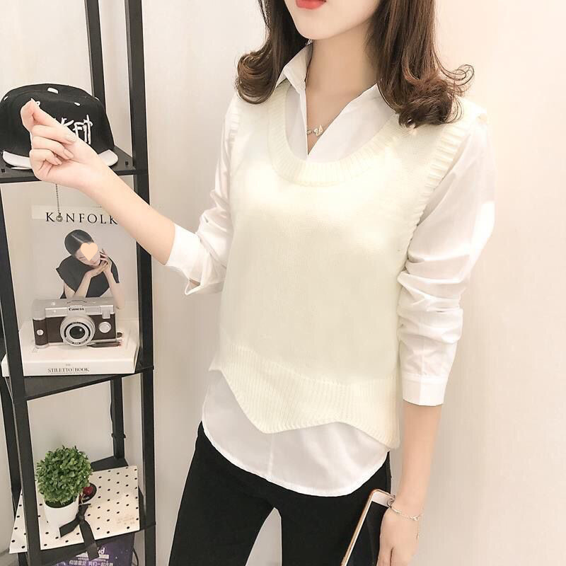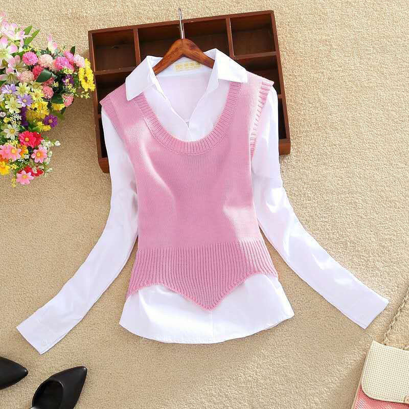 스웨터 조끼 셔츠 민소매 2025 봄 가을 얇은 패션 세트 여성을위한 한국 느슨한 니트 조끼 탑