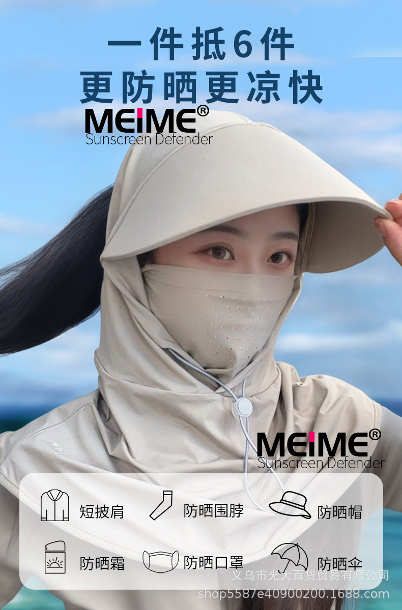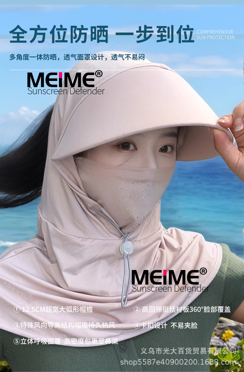 2025 년 태양 보호 마스크 목 얼굴 통합 아이스 실크 여름 승마 차양 모자 여성의 안티 UV 빅 햇 브림