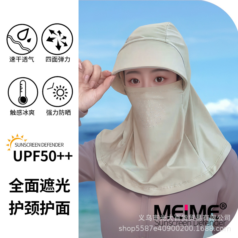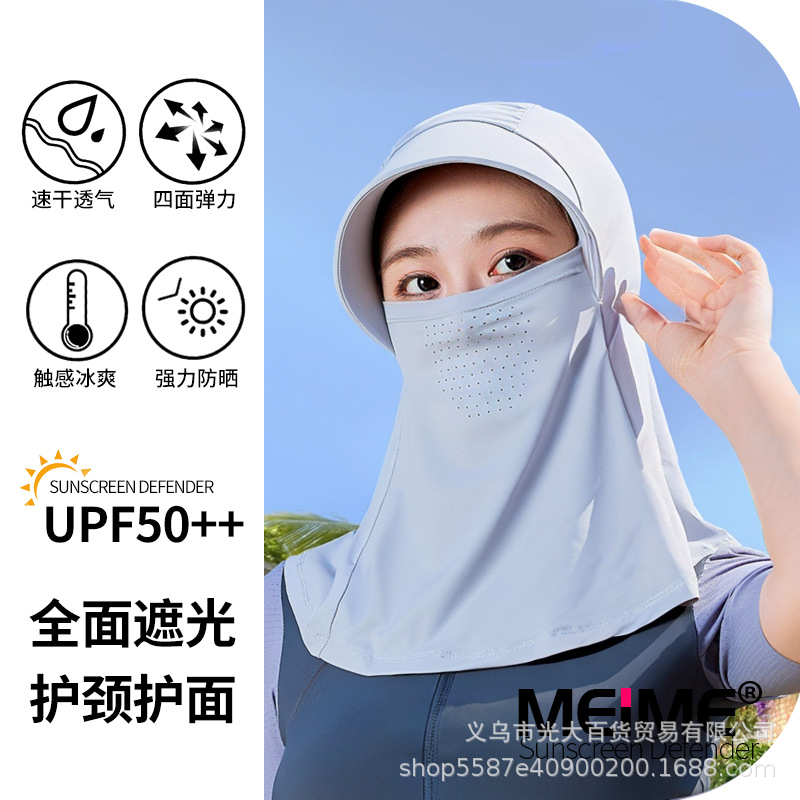 2025 년 태양 보호 마스크 목 얼굴 통합 아이스 실크 여름 승마 차양 모자 여성의 안티 UV 빅 햇 브림스토어 가기