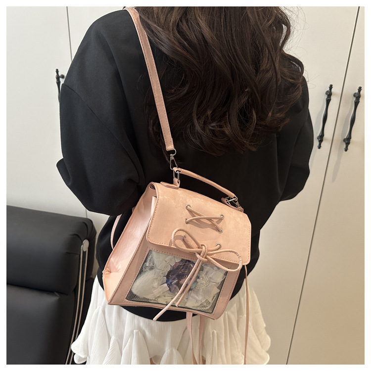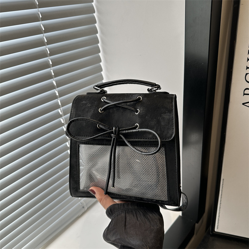 原创校园通勤简约大容量透明痛包女手提双肩纯色书包学生日系扎谷