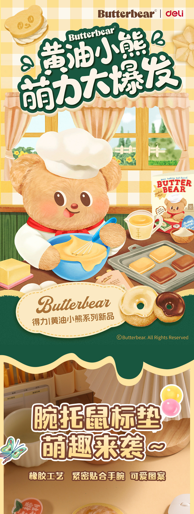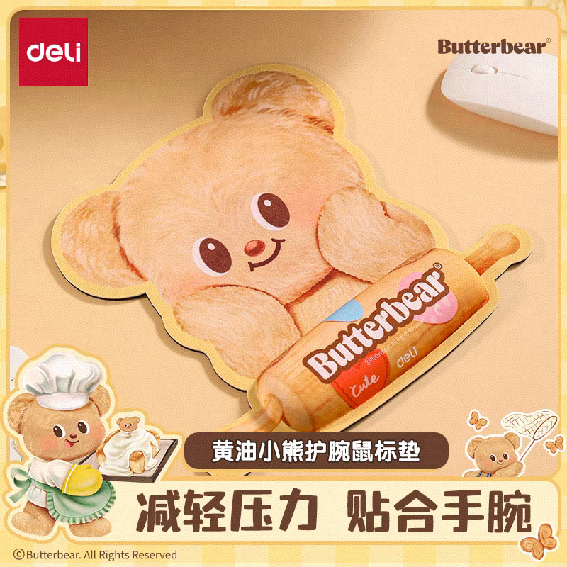 델리 HY451 버터 베어 편안한 메모리 폼 손목 마우스 패드 내마모성 오피스 게임 마우스 패드스토어 가기