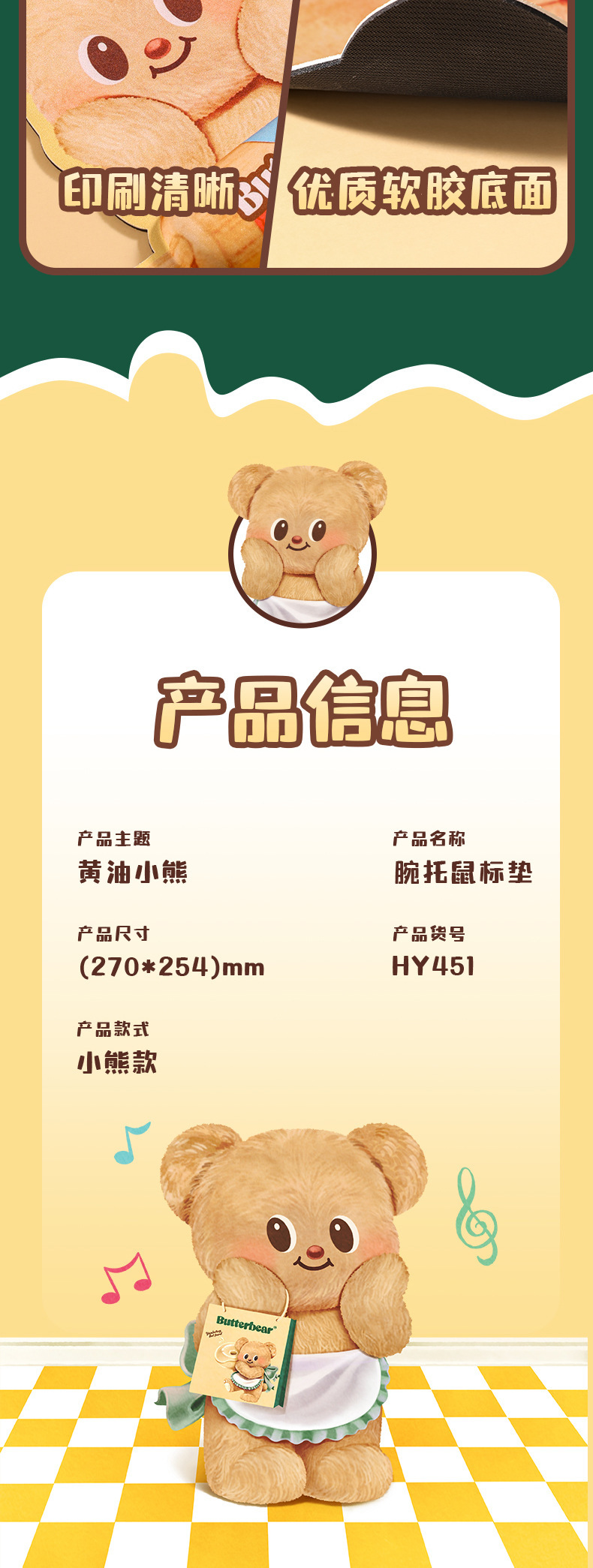 • 델리 HY451 버터베어 손목받침대 마우스패드(옐로우)(개)