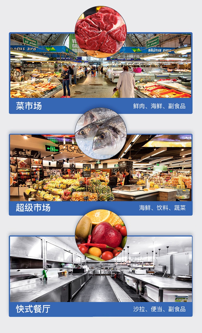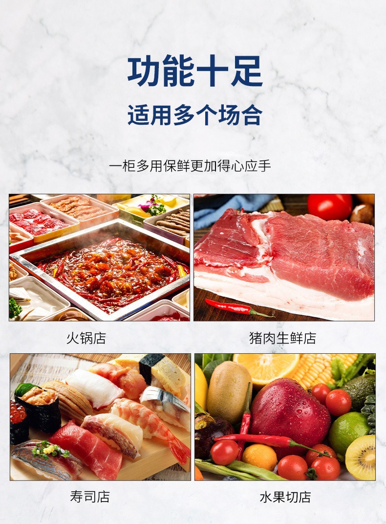 냉장육 조리식품 진열장, 슈퍼마켓 냉장고, 신선보관용 쇠고기/양고기, 과일, 조림식품, 공냉식 상업용 주문식품 진열장스토어 가기