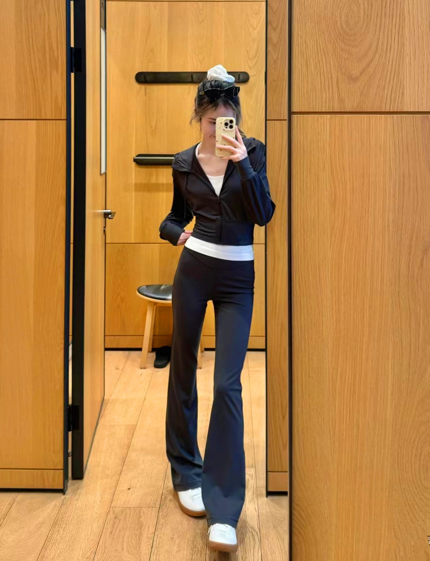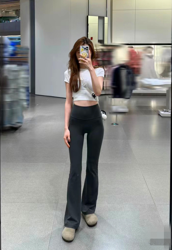룰루 오리지널 플레어 바지 요가 바지 스포츠 슬림 핏 슬리밍 바지 여성용 높은 허리 복부 엉덩이 리프팅 올 매치 캐주얼 바지스토어 가기