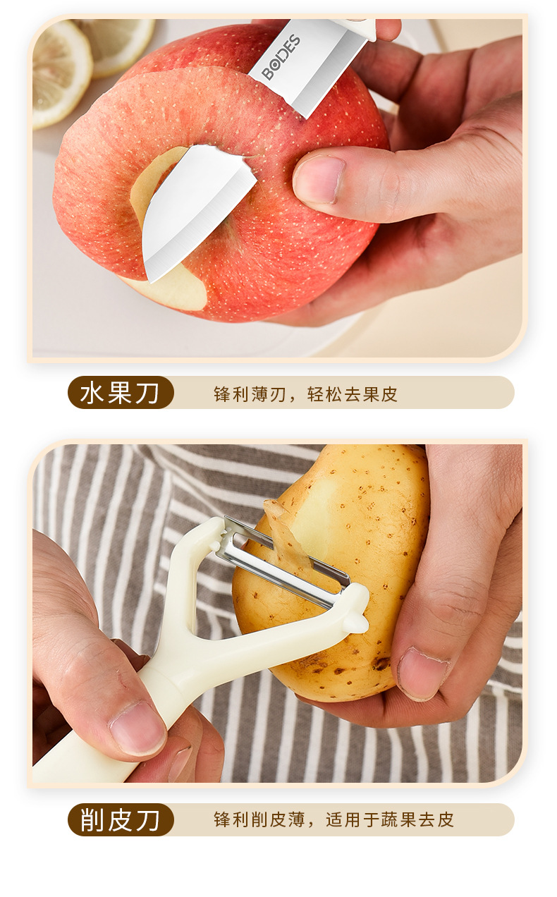 새로운 루카 고양이 초퍼 가정용 여성용 칼 세트 스테인레스 스틸 초퍼 과일 필러 과일 칼스토어 가기