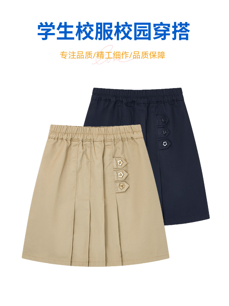초등 및 중학생 카키 바지 스커트 영국 아카데미 스타일 어린이 반쪽 치마 학교 유니폼 소녀 네이비 주름 치마