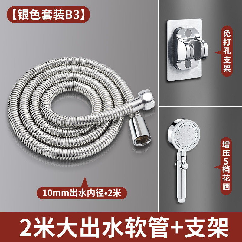 • [실버 3종세트 B3] 대형 배수호스 2m개 + 브라켓 + 5단 슈퍼차저 샤워기