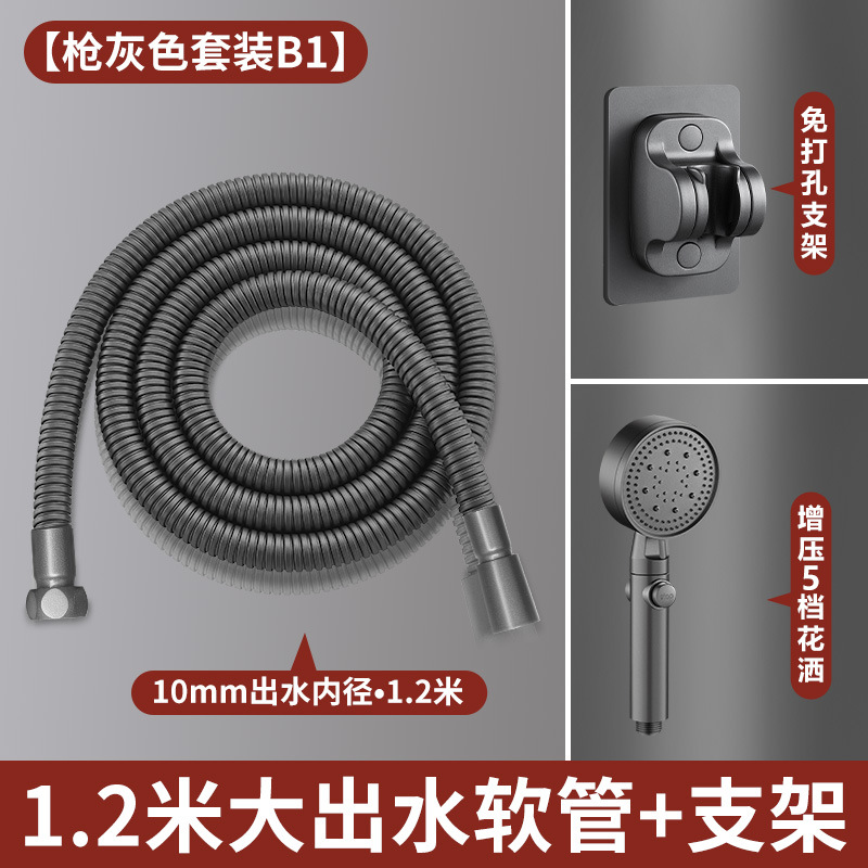 • [건그레이 3종세트B1] 대형 배수호스 1.2m개 + 브라켓 + 5단 슈퍼차저 샤워기
