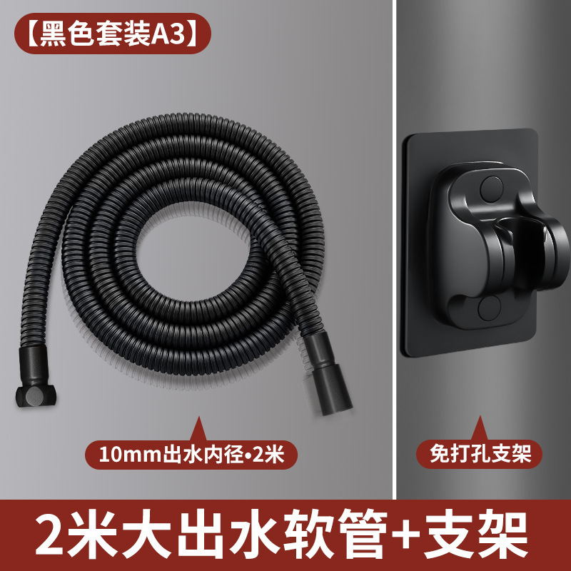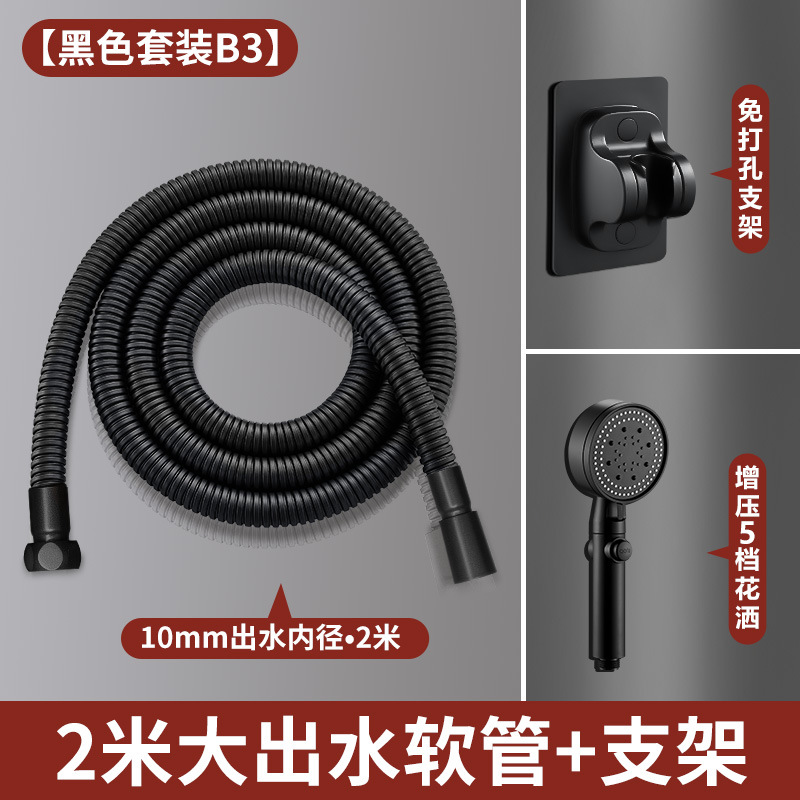 • [블랙 3종세트B3] 대형 배수호스 2m개 + 브라켓 + 5단 슈퍼차저 샤워기