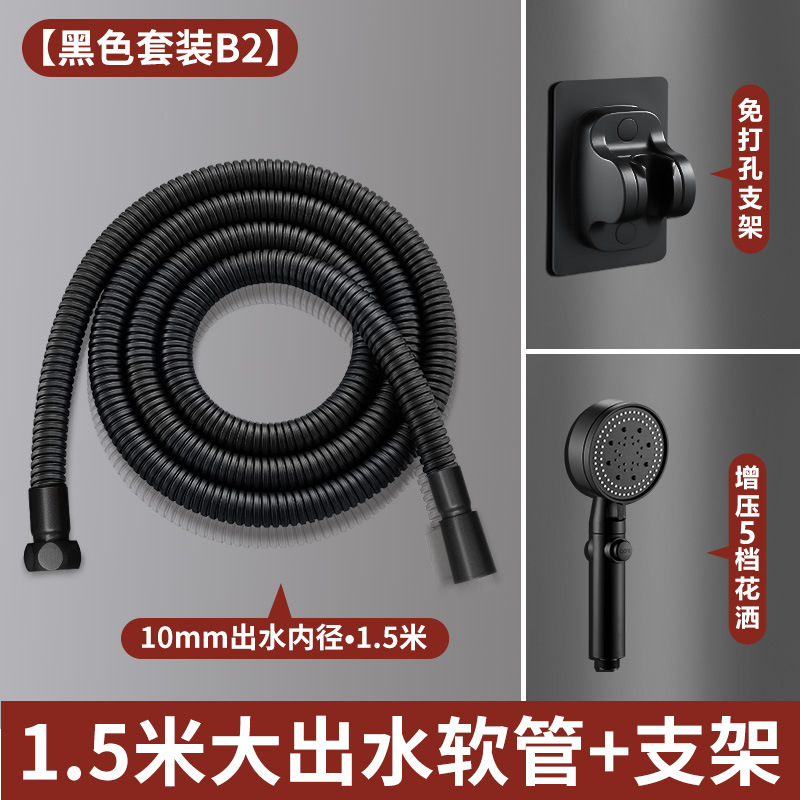 • [블랙 3종세트 B2] 대형 배수호스 1.5m개 + 브라켓 + 5단 슈퍼차저 샤워기