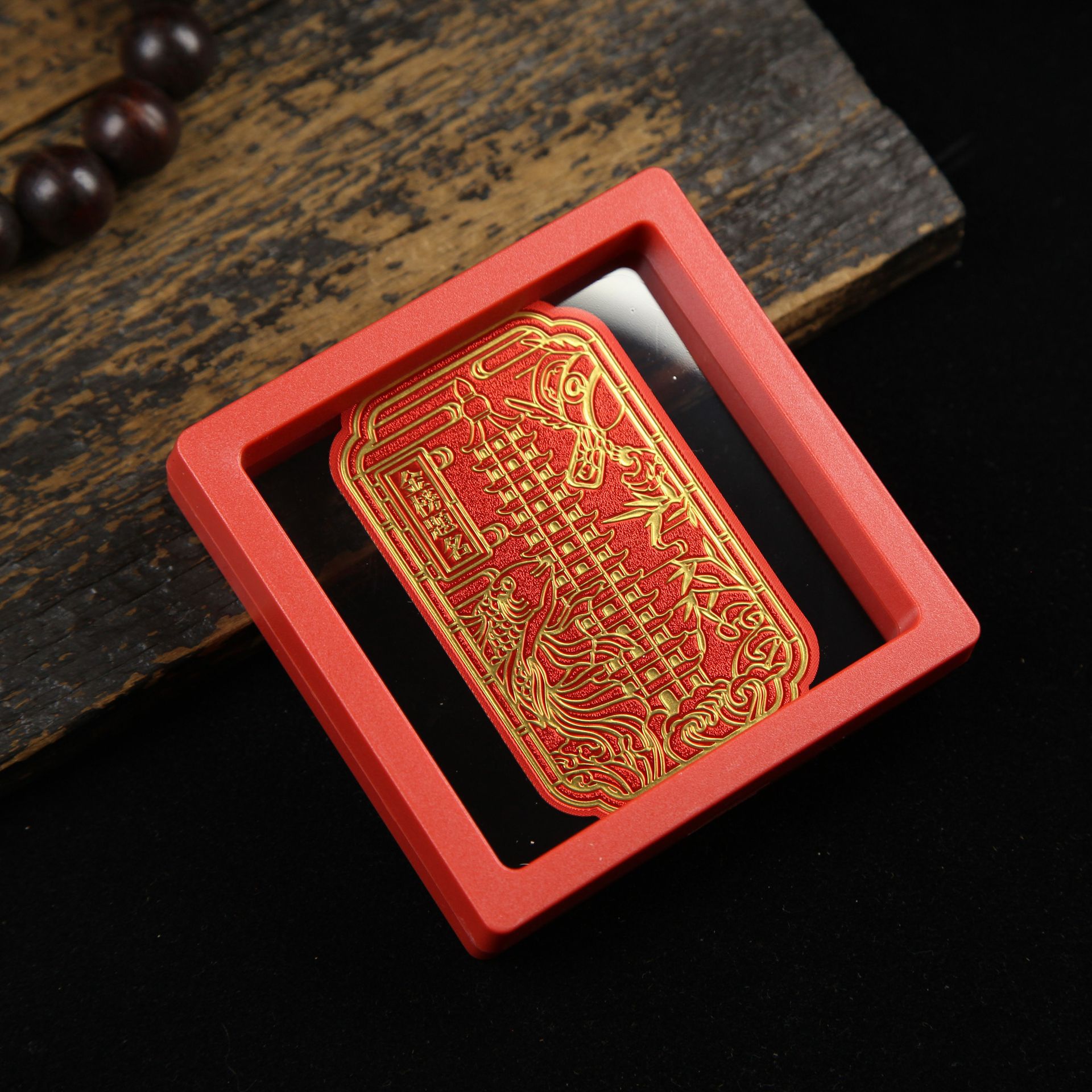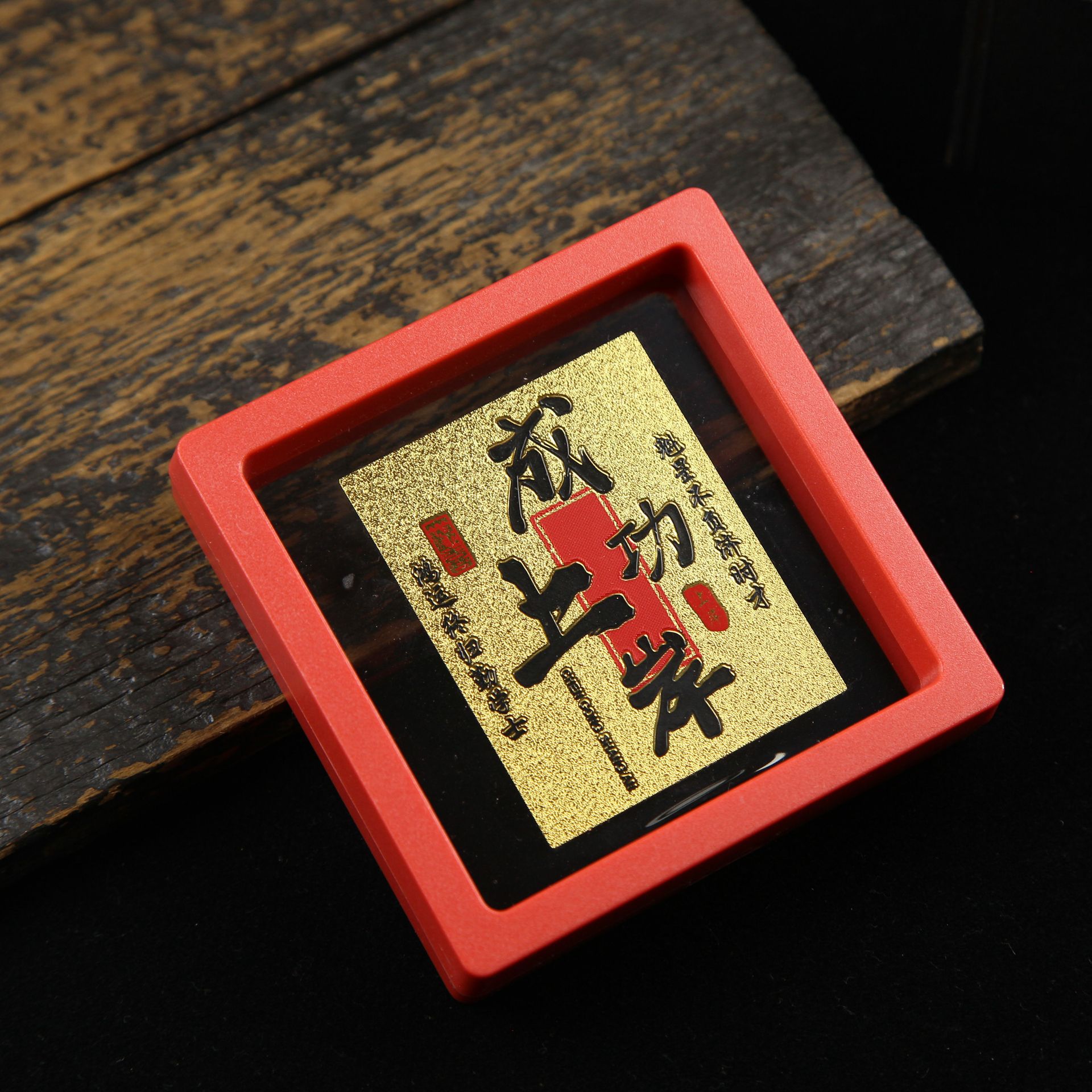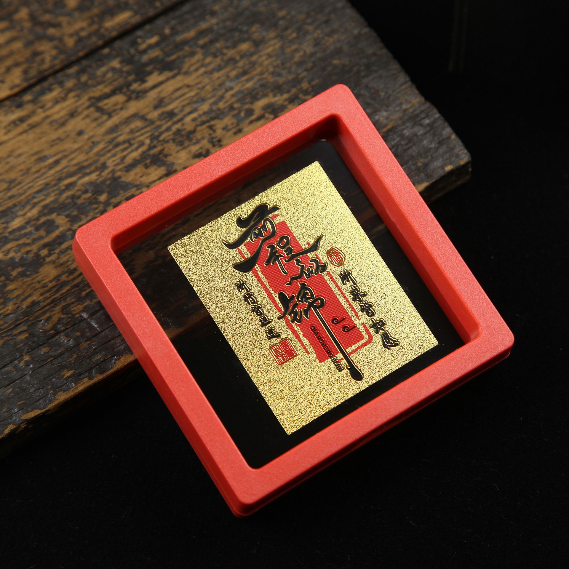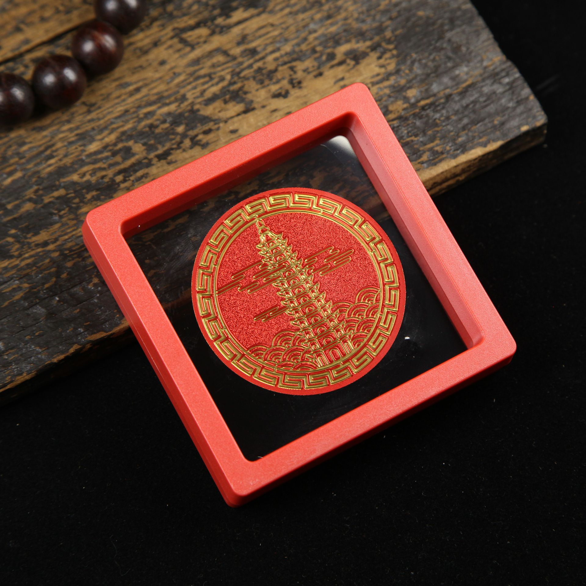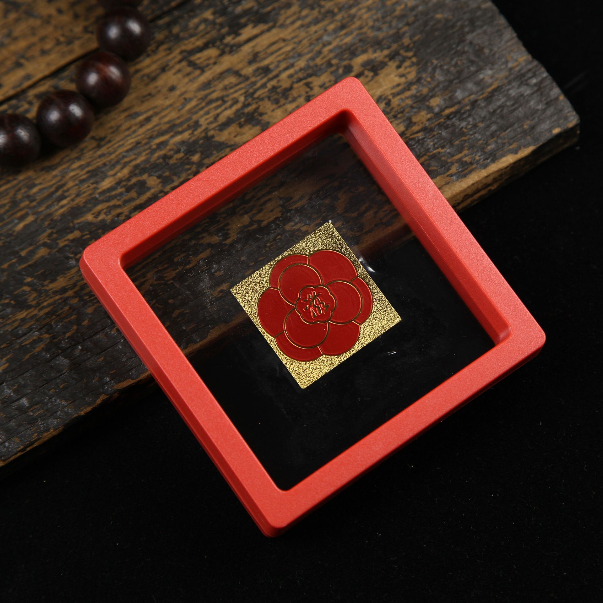 • 아크릴 레드 박스(크기 9*9*2cm) 골든 파프 스티커-Qishi
