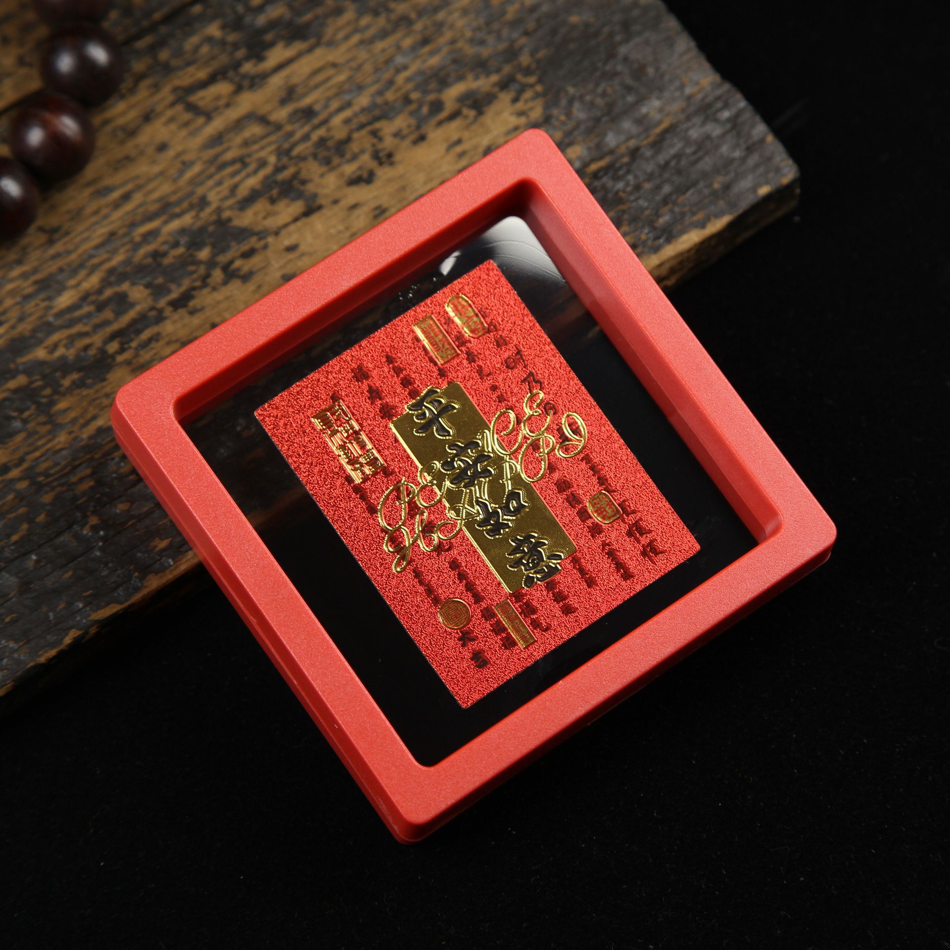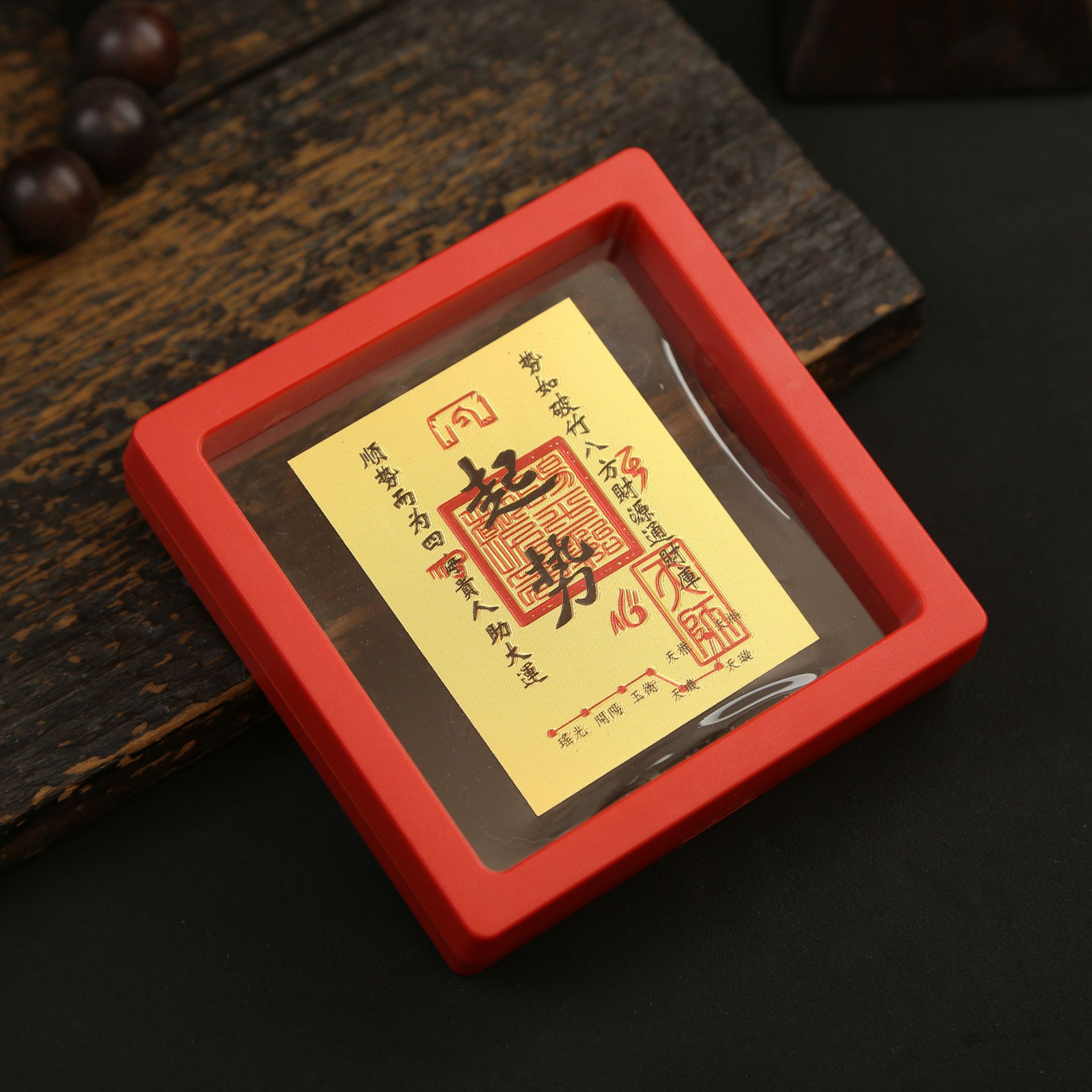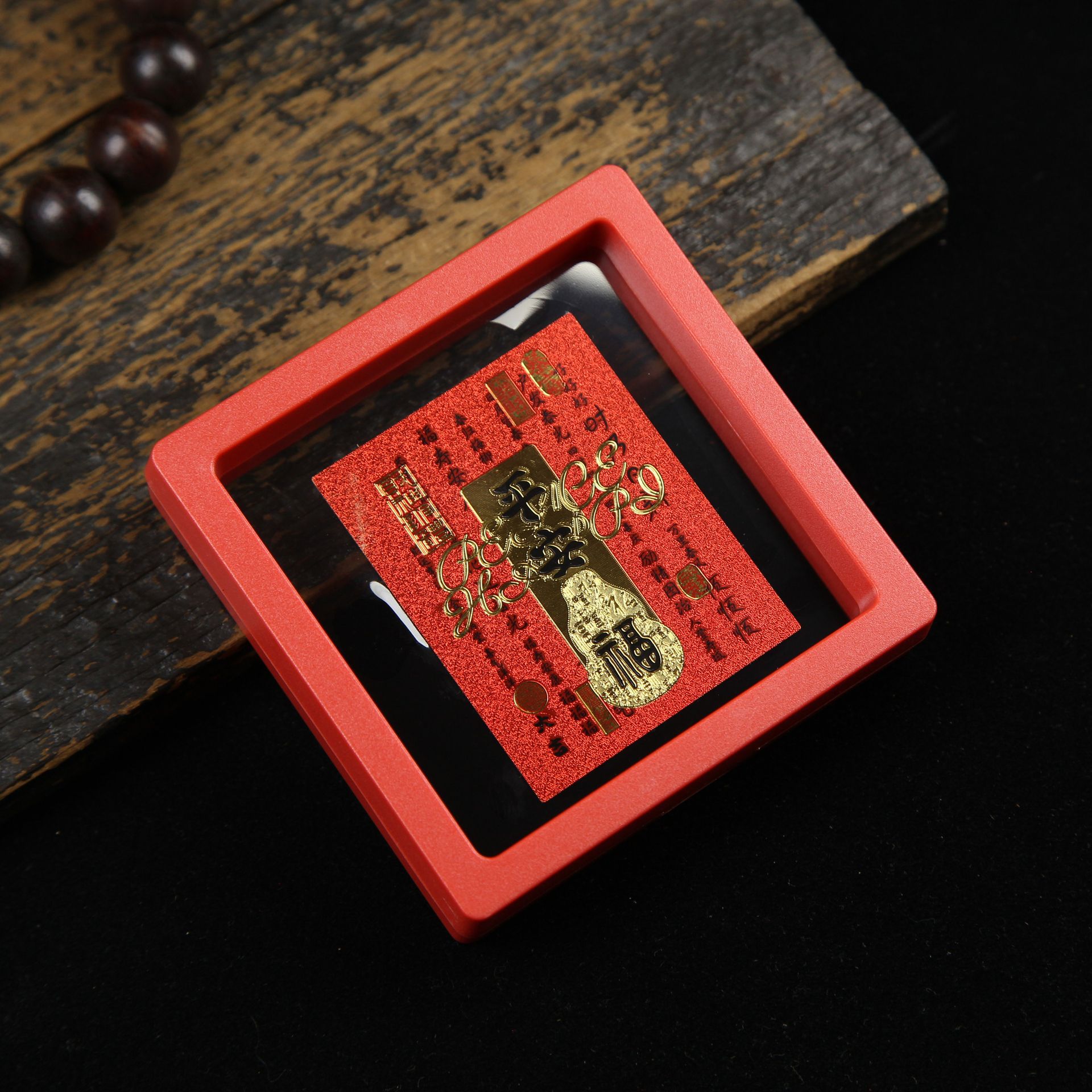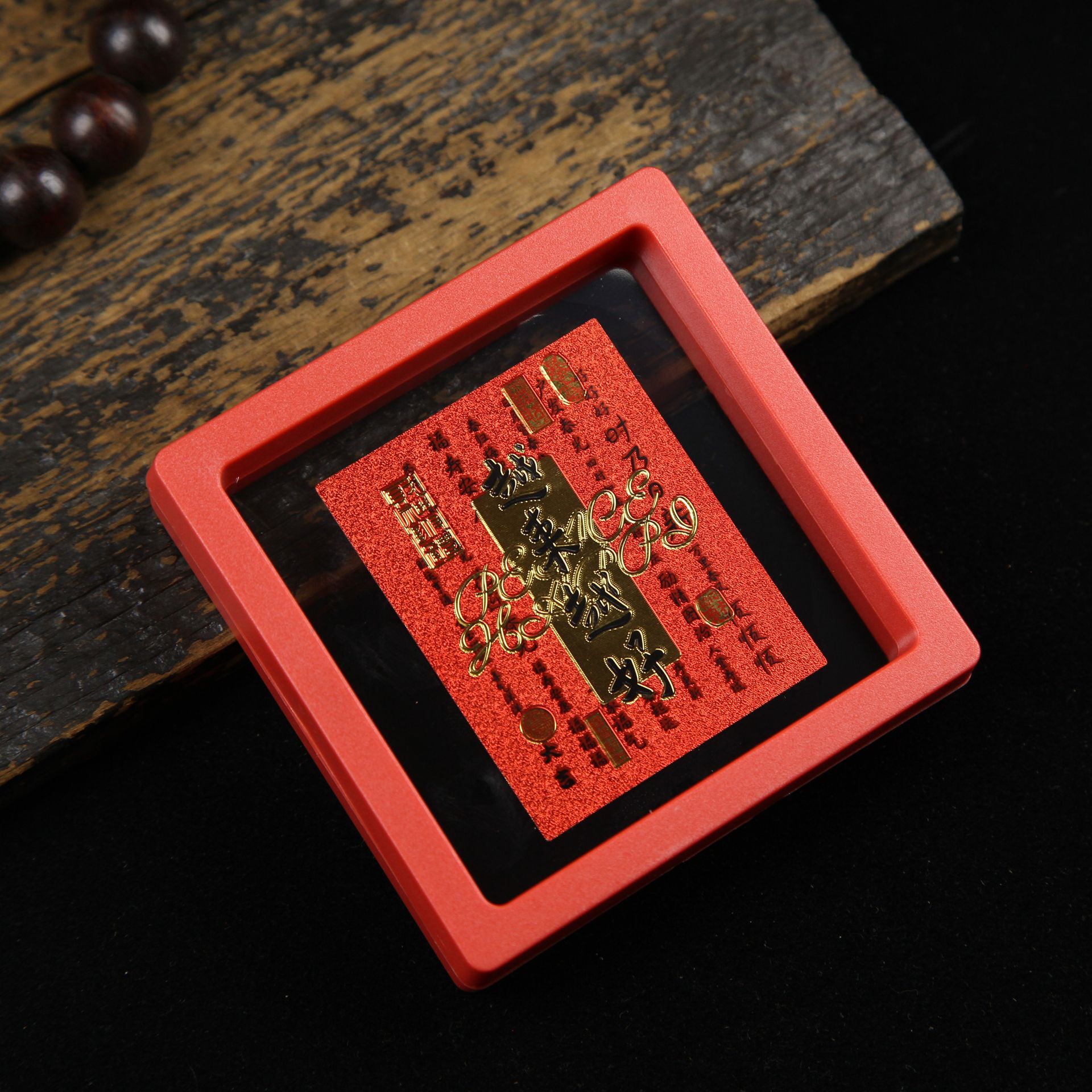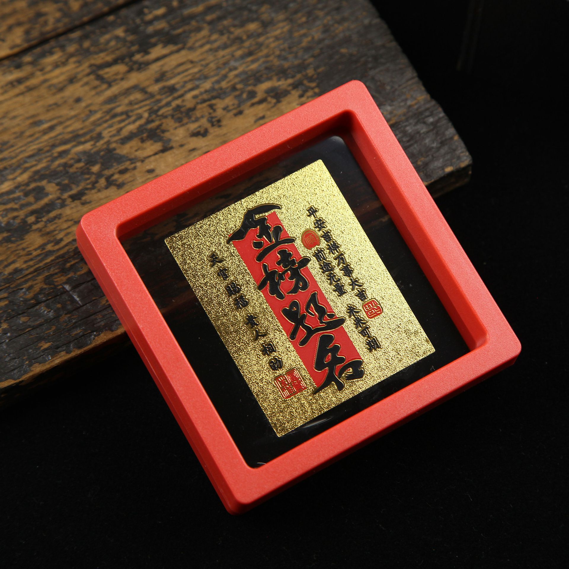 • 아크릴 레드 박스(크기 9*9*2cm) 골든 파프 스티커-Qishi